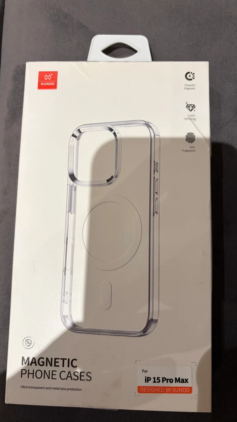 Selling a brand new XUNDD Wisely Series magnetic phone case for the iPhone 15 Pro Max! This case is transparent and made with TPU, PC, and metal materials. It features ultra-transparent metal lens protection, is anti-yellowing and anti-fingerprint. Comes in the original box!