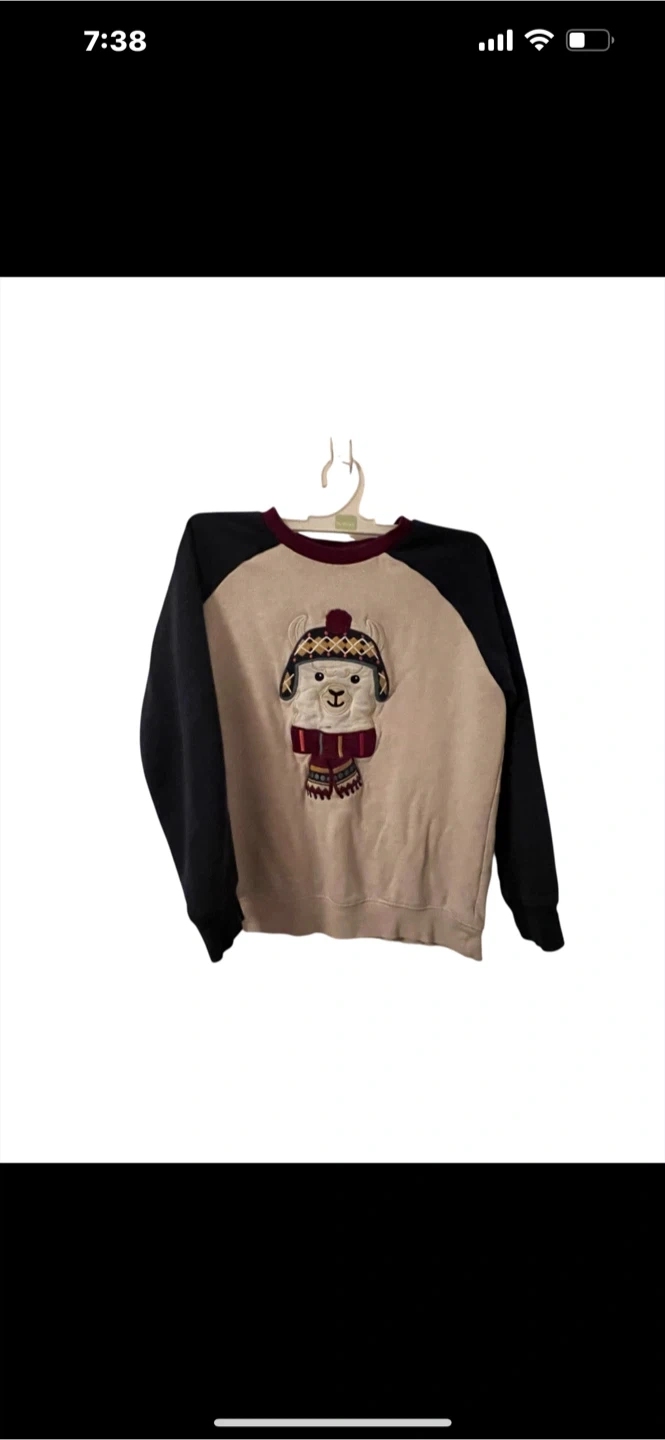 Cozy up in this adorable llama crewneck sweatshirt! It features a cute llama design with a hat and scarf. Perfect for chilly days and adding a touch of whimsy to your wardrobe