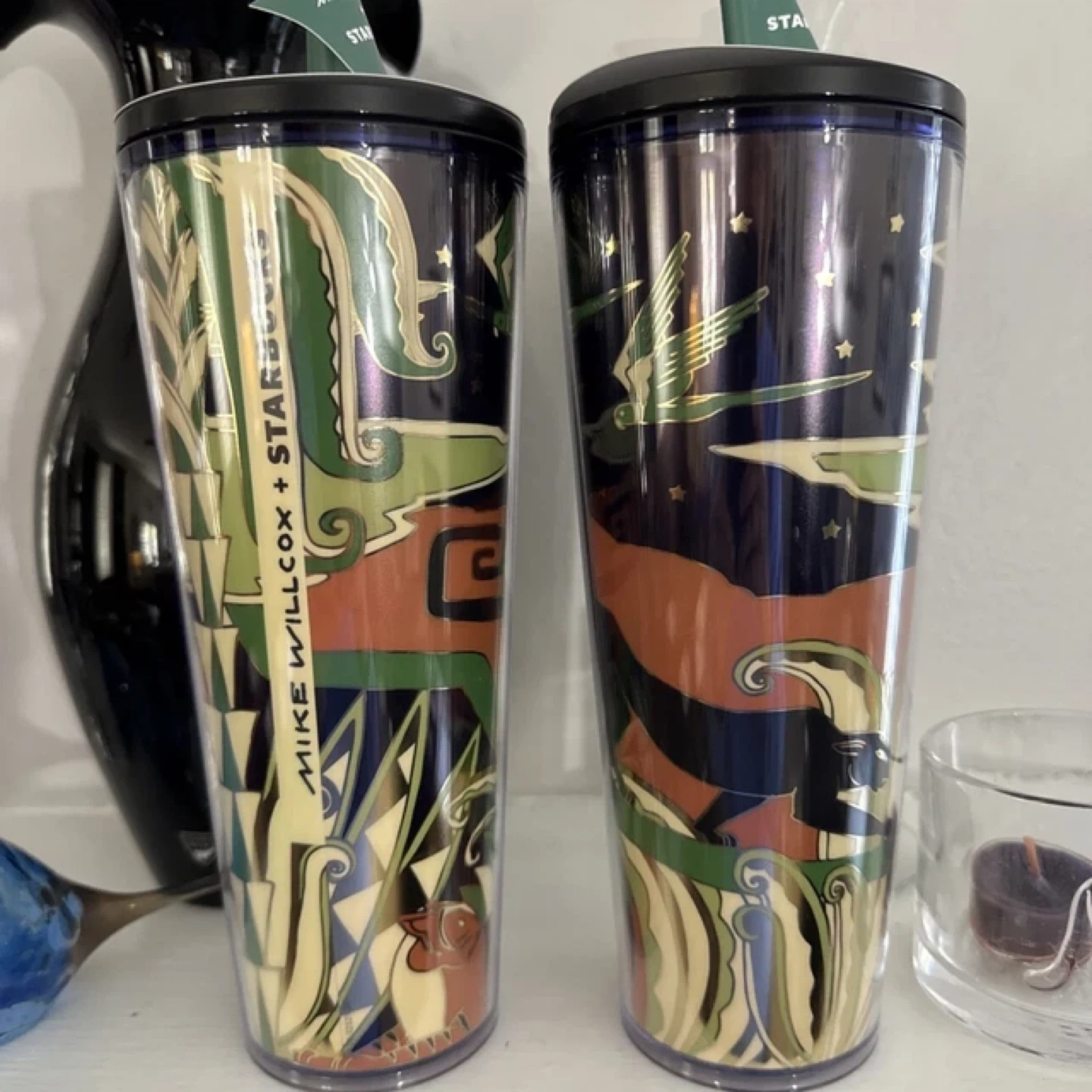 Selling a Starbucks tumbler designed by Mike Willcox. The artwork is really unique and eye-catching, perfect for any Starbucks collector or art lover.