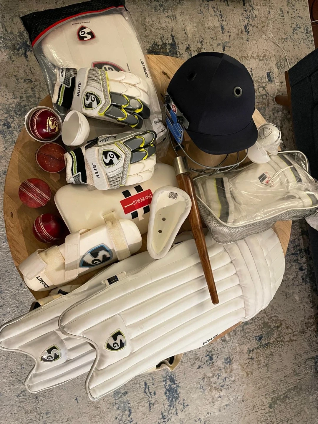 Selling a complete SG cricket kit! Includes gloves (HiLite), pads (EcoLite & Litevate), helmet, new & old leather balls, and other protective gear. Everything you need to get started or upgrade your set. Great condition! Some of the kit is like new.