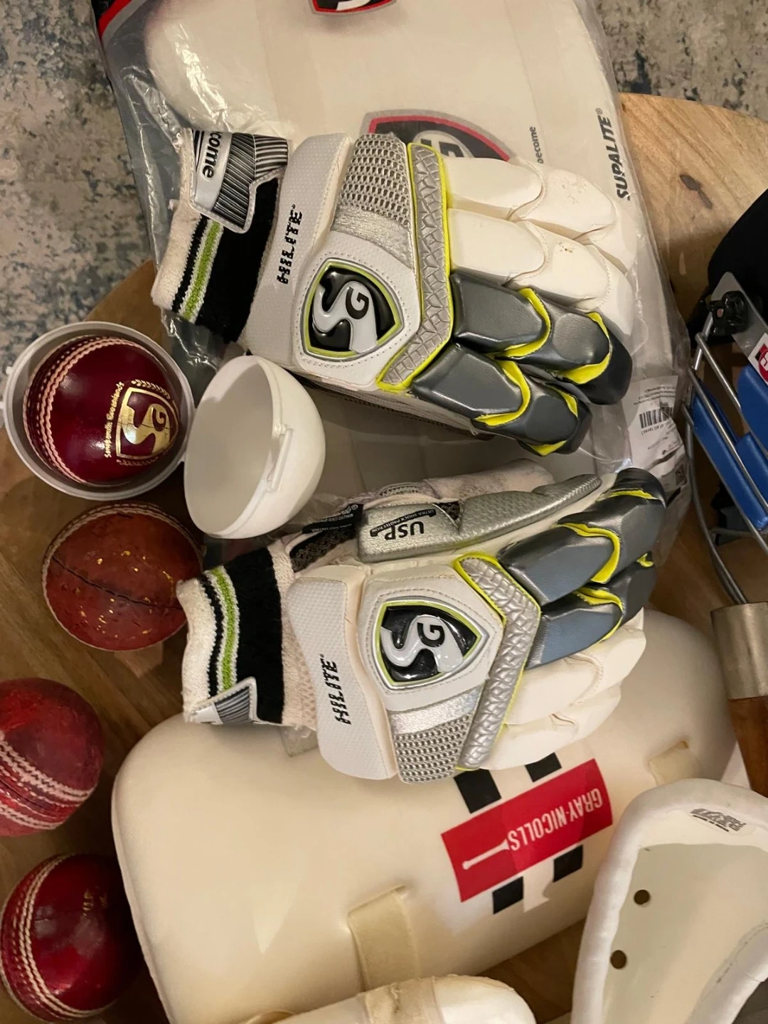 Selling a complete SG cricket kit! Includes gloves (HiLite), pads (EcoLite & Litevate), helmet, new & old leather balls, and other protective gear. Everything you need to get started or upgrade your set. Great condition! Some of the kit is like new.