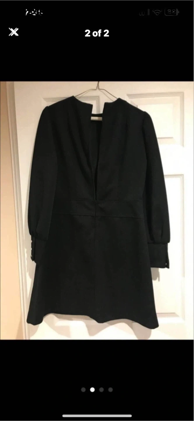 Selling a vintage Crimplene dress in black! It's a size 38 and made of 100% polyester. It has a lovely embroidered design on the front. Perfect for a retro look!