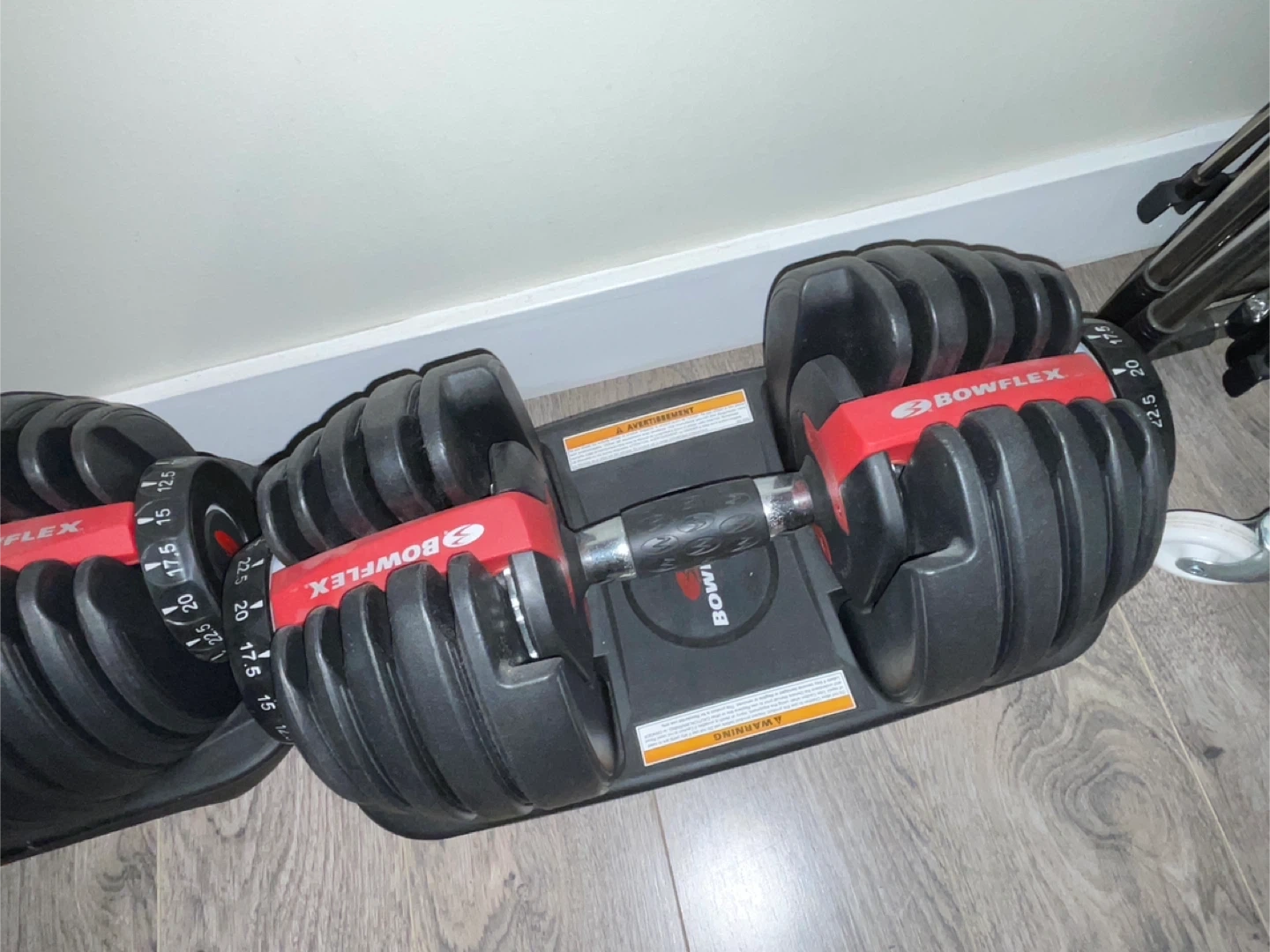 Selling a pair of Bowflex adjustable dumbbells. They're in great condition and ready for a new workout routine! These dumbbells are perfect for saving space and easily adjusting weight for different exercises.