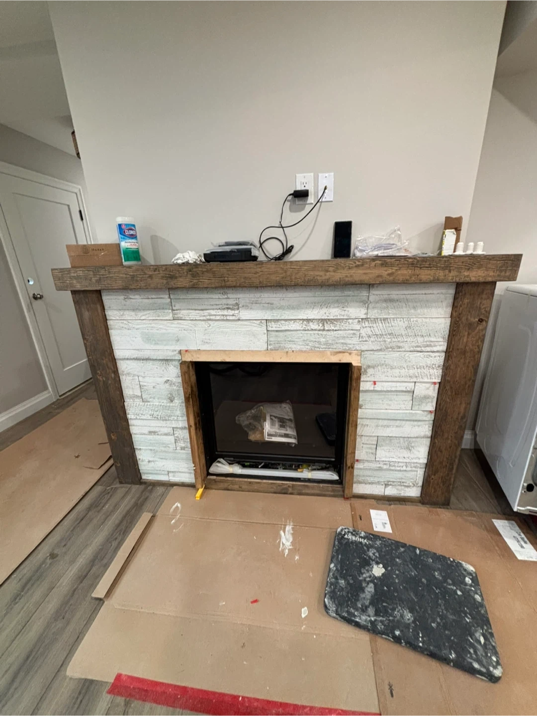 Selling a fireplace rustic, whitewashed vintage farm stacked stone. Roughly 12sq ft specialty order from california. This is ultimately the most rustic farm look for a home. $400. Value. Just the stacked stone which is in boxes. Pic is to see how it looks
