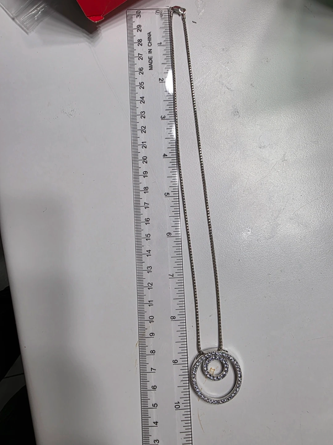 Selling a lovely silver-tone necklace with a double circle pendant. The pendant features sparkling stones, adding a touch of elegance to any outfit. It's in great condition and ready to be your new favourite accessory! Perfect condition, marked 925 Italy