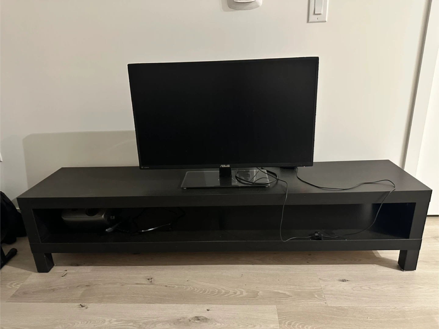 Selling a used TV bench in black. It's in good condition and ready for a new home. Perfect for organizing your entertainment area!