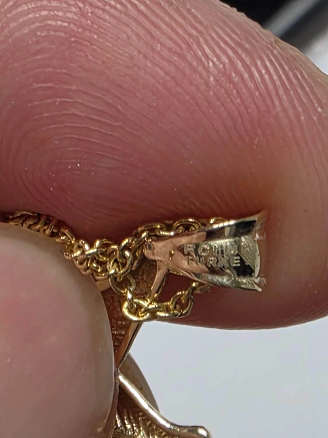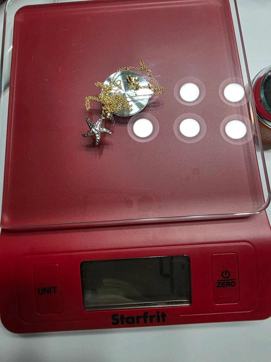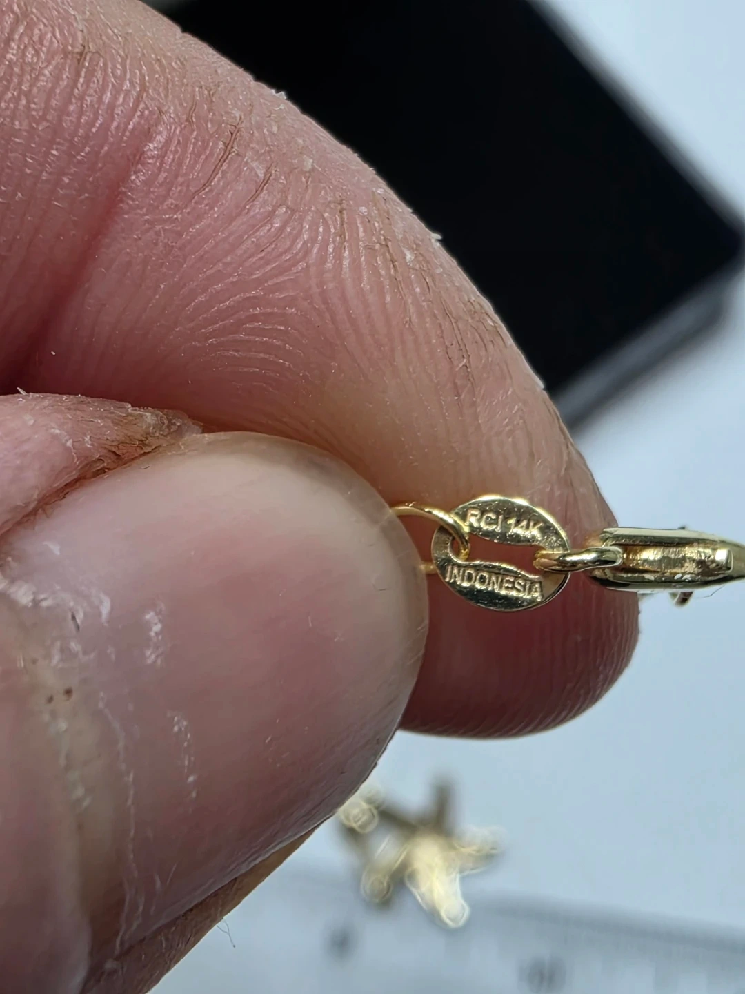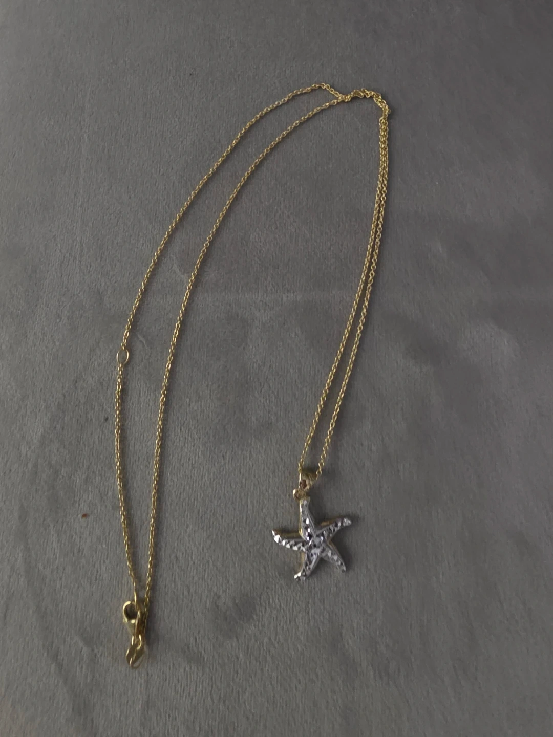 Selling a lovely 14kt solid gold necklace with a starfish pendant. It comes in a box, making it perfect for gifting or safekeeping. The pendant has a unique textured design.