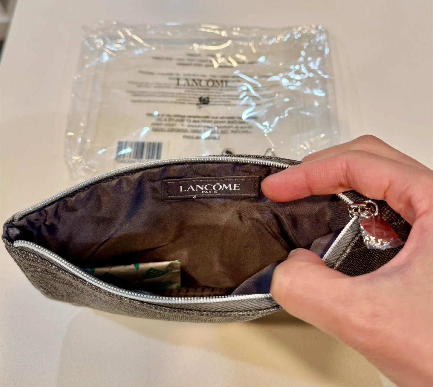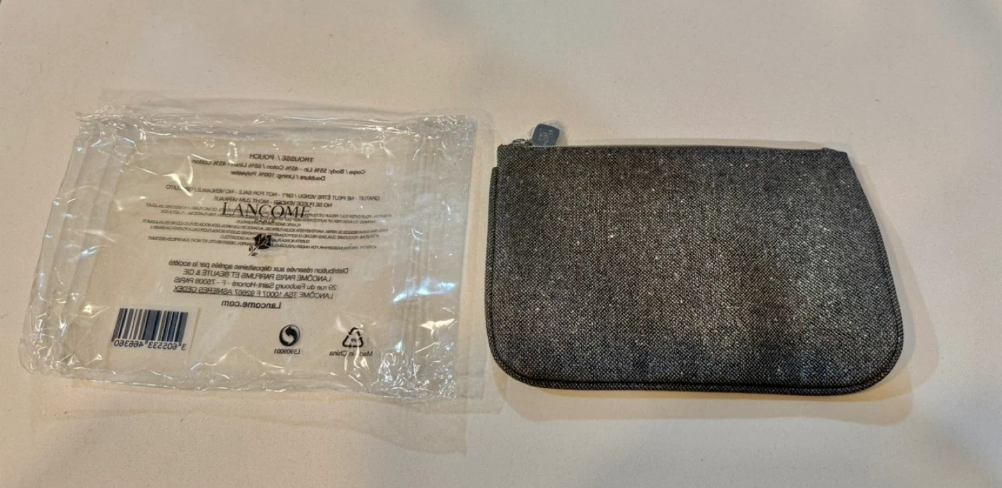 Here's a brand new Lancome pouch still in its original packaging! It's a stylish and practical accessory to keep your essentials organized. The pouch features a sleek design and is perfect for travel or everyday use.