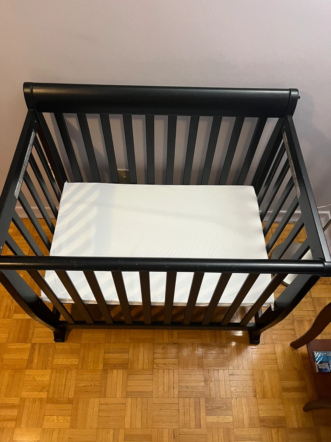 Selling a sturdy black baby crib. It's in very good condition and ready for a new little one.