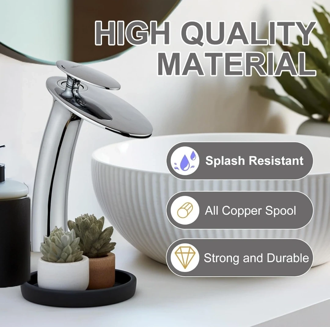 Wovier Chrome Waterfall Bathroom Faucet,Single Handle Single Hole Brass Lavatory Vanity Vessel Faucet,Slanted Body Basin Mixer Tap Tall Body with Supply Hose