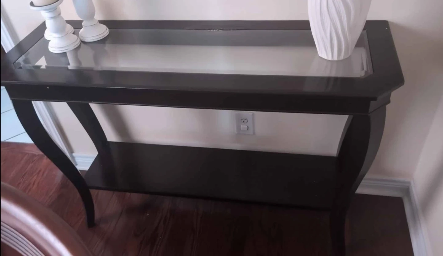 Selling a console table, perfect for entryways or living rooms. It has a sleek design and is in great condition. It's a stylish and functional piece!