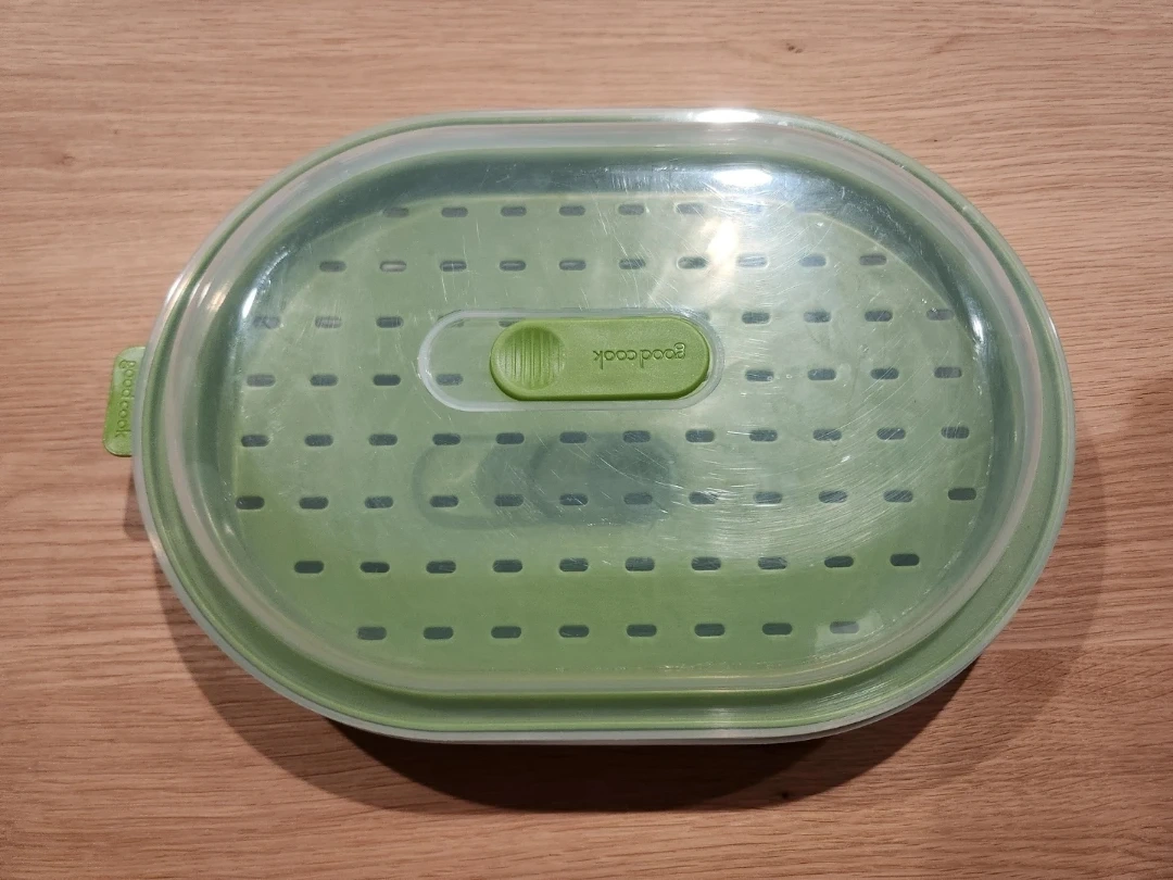 I'm selling a Good Cook microwave steamer in great condition! It's perfect for quickly steaming veggies or other foods in the microwave. It comes with the base, steamer insert, and lid.
