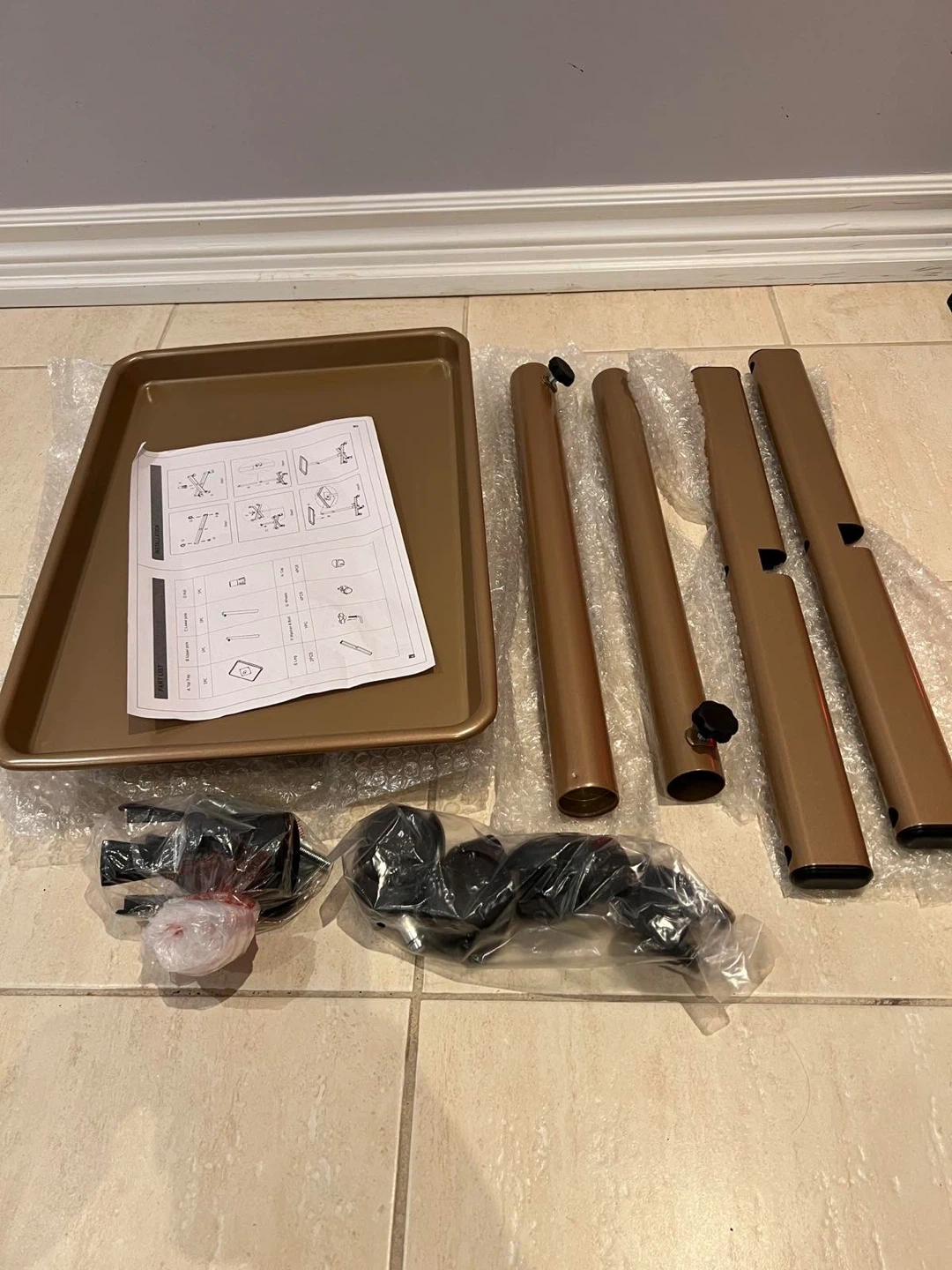 Selling a rolling salon tray in a bronze colour! It's perfect for holding supplies while you're working. The height is adjustable, so you can customize it to your needs! Great condition and very useful