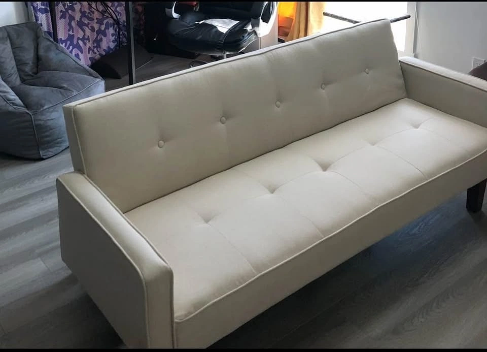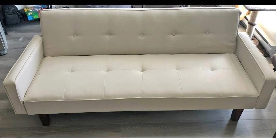 Nathalia 75” square arm sleeper sofabed for sale. No stains, or damage. Fairly used condition and comes from a pet friendly house. Has a small scratch on the left arm that’s patched. Comfortable sofa and easily converts into a bed. Pickup only- Price negotiable.