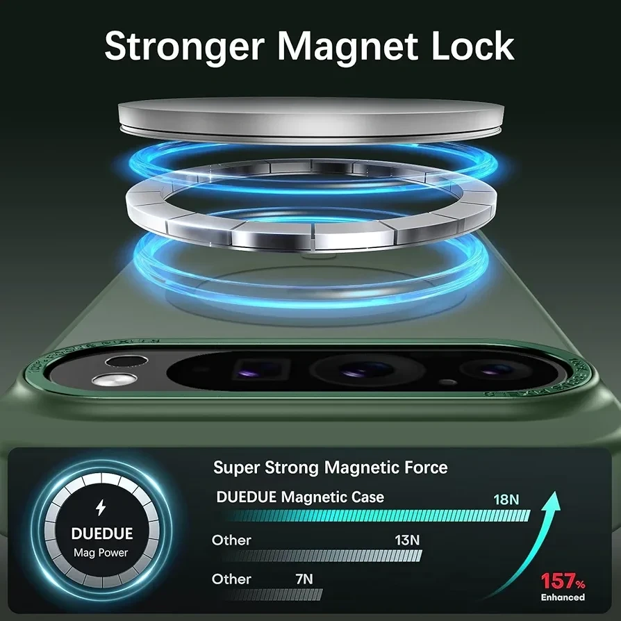 This is a BRAND NEW MagSafe magnetic iPhone case in green! It features a stronger magnet lock and a matte clear back cover design. It's comfortable with a smooth touch for a better user experience and has anti-fingerprint, anti-scratch, and stain prevention features. It also has a super strong magnetic force.