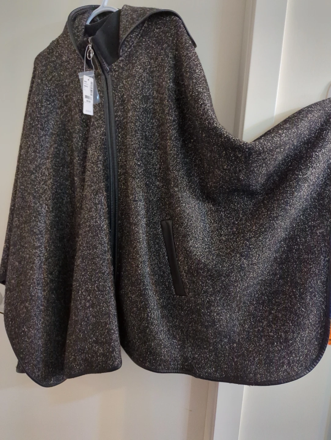 Selling a Pennington's cape/poncho with hood. It's new with tags, and ready for a new owner! The cape is a neutral colour (dark grey/black) made of wool, viscose and polyester, and has a zipper. Regular price is $120. Purchased it for $72+tax (40% off). Never worn.