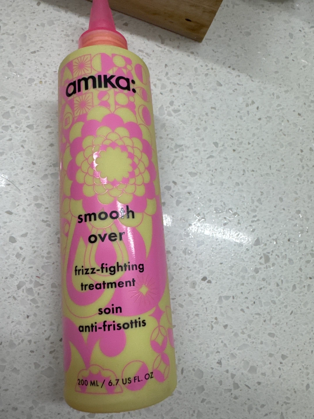 I'm selling an Amika Smooth Over frizz-fighting treatment. It comes in a 200 mL bottle. This treatment is designed to smooth over frizz and leave your hair looking its best
