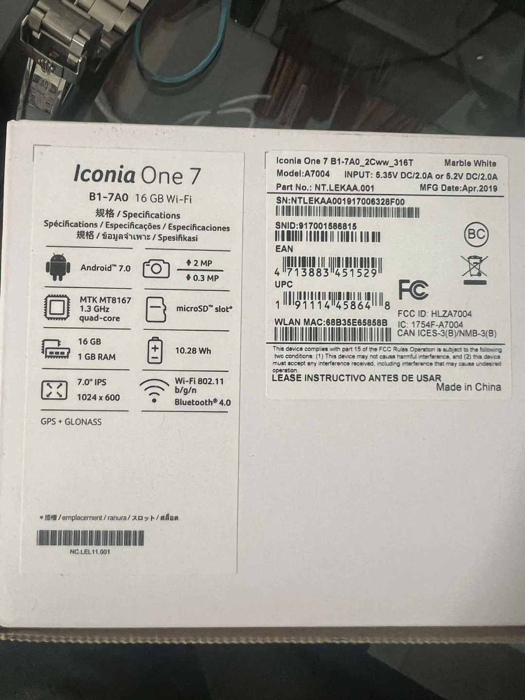Selling an Acer Iconia One 7 tablet in brand new condition! It comes with 16 GB of storage and Wi-Fi connectivity. The screen is a 7.0" IPS display with 1024x600 resolution. Also includes Bluetooth 4.0. Comes with the original box!