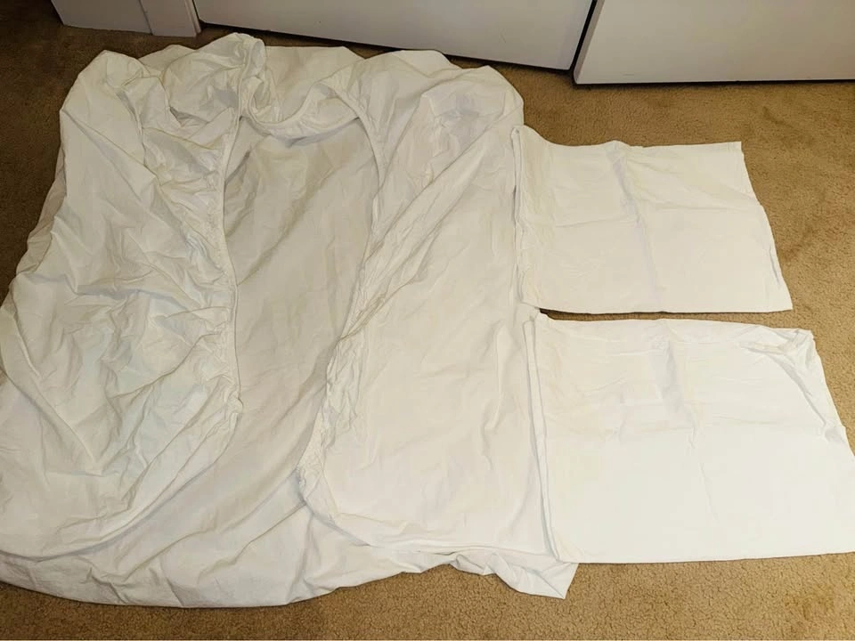 2️⃣ White IKEA Bedsheet (with Pillow Covers) – $15