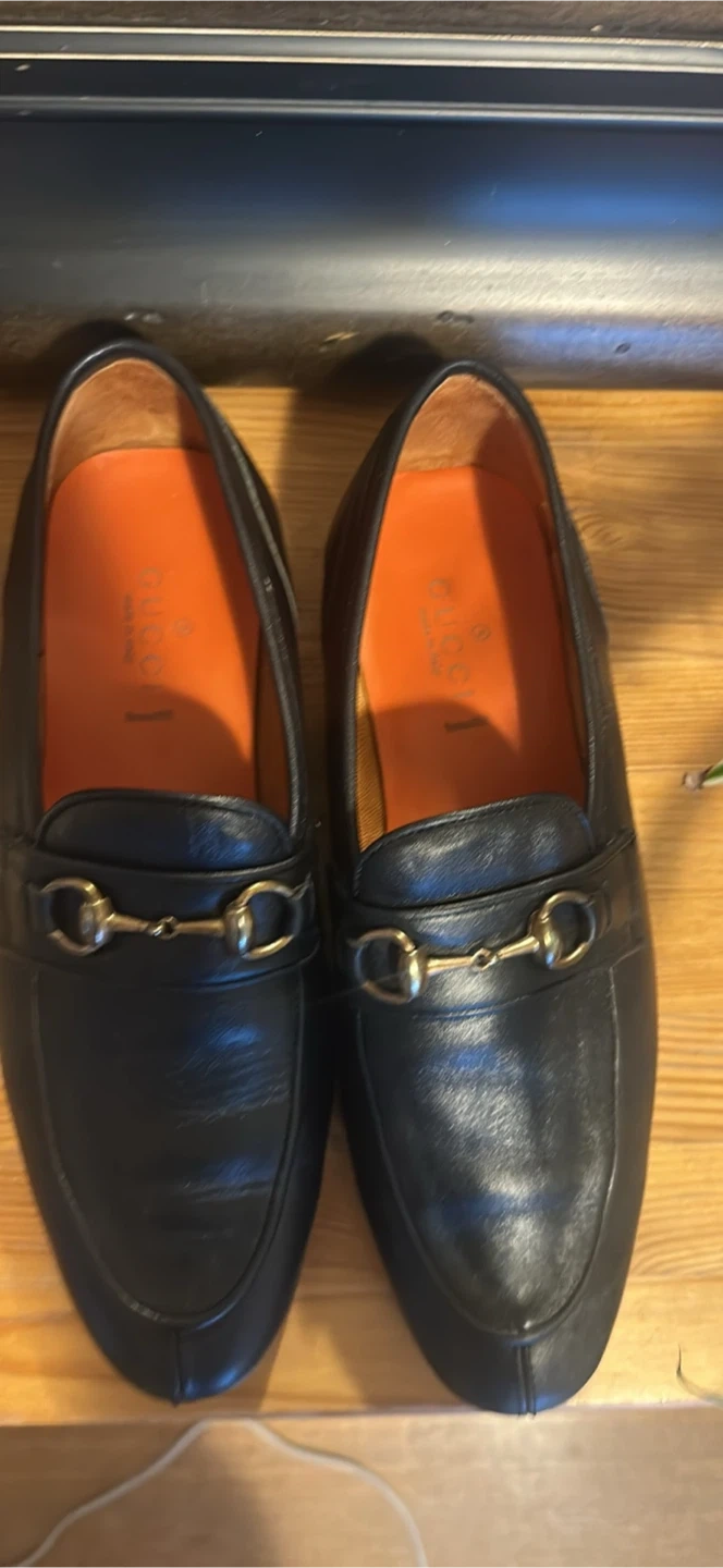 Selling a pair of Gucci black leather loafers. They are in good condition and stylish! Perfect for any occasion!
