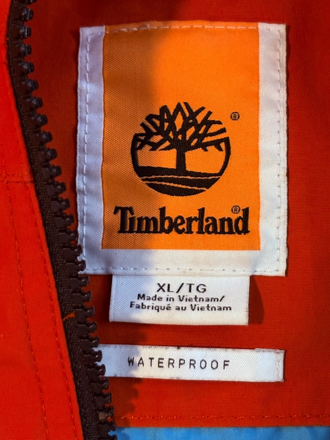 Selling a genuine Timberland Waterproof Pullover Anorak in a rare bright orange colour. Size XL. Lightweight waterproof shell — perfect for spring, fall, hiking, or everyday rain protection. Classic outdoor style with the vertical Timberland chest patch and large front pocket.