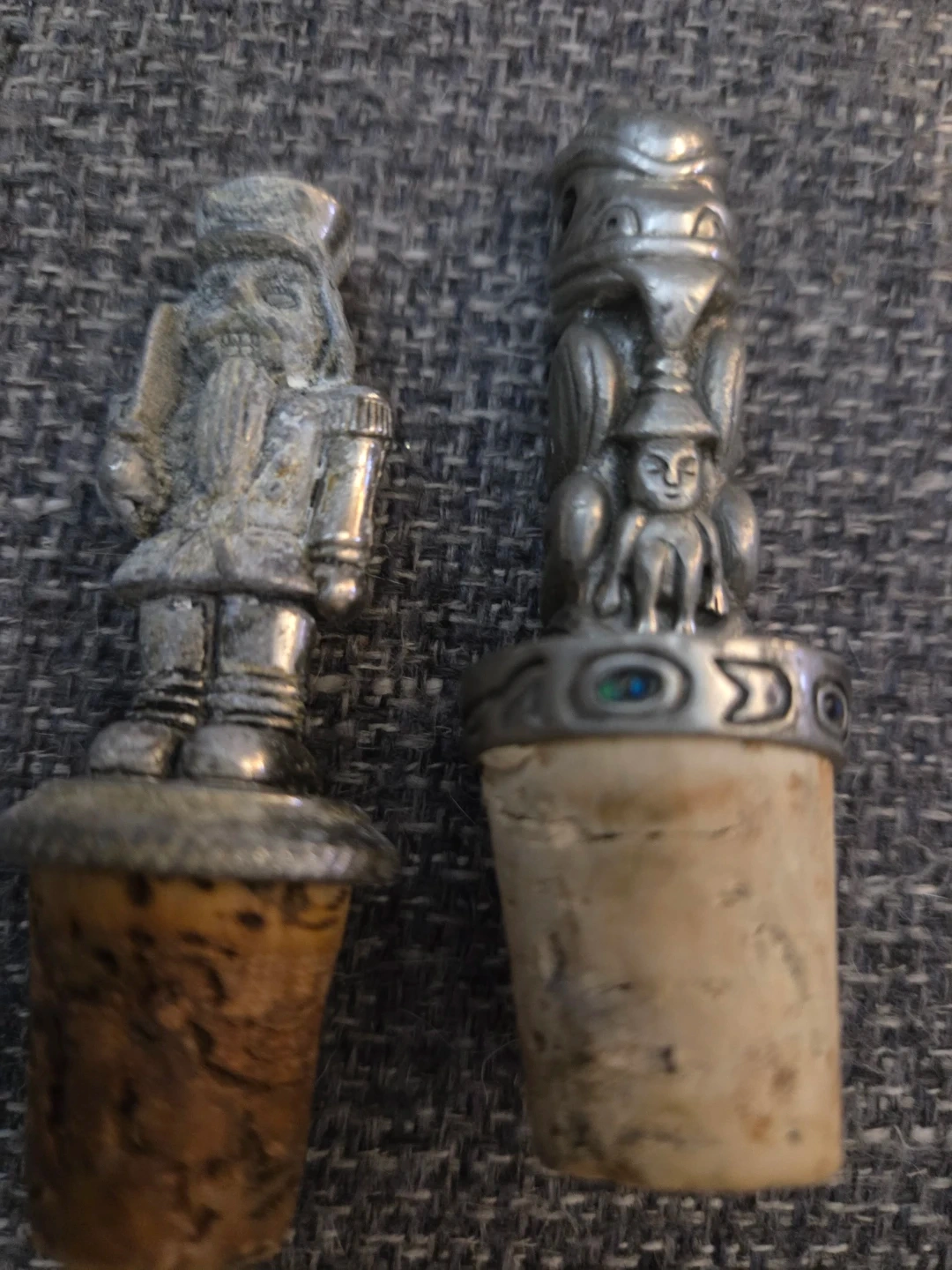 Selling a collection of decorative wine bottle stoppers! There's a variety of styles and materials, including wood, metal, and beaded designs. They're perfect for adding a touch of personality to your wine bottles and keeping your wine fresh.