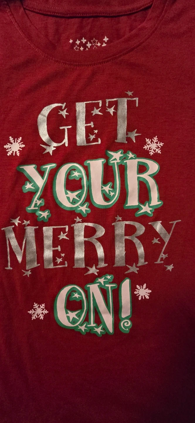 Cute red Christmas T-shirt in size small womens! The shirt says "Get Your Merry On!"