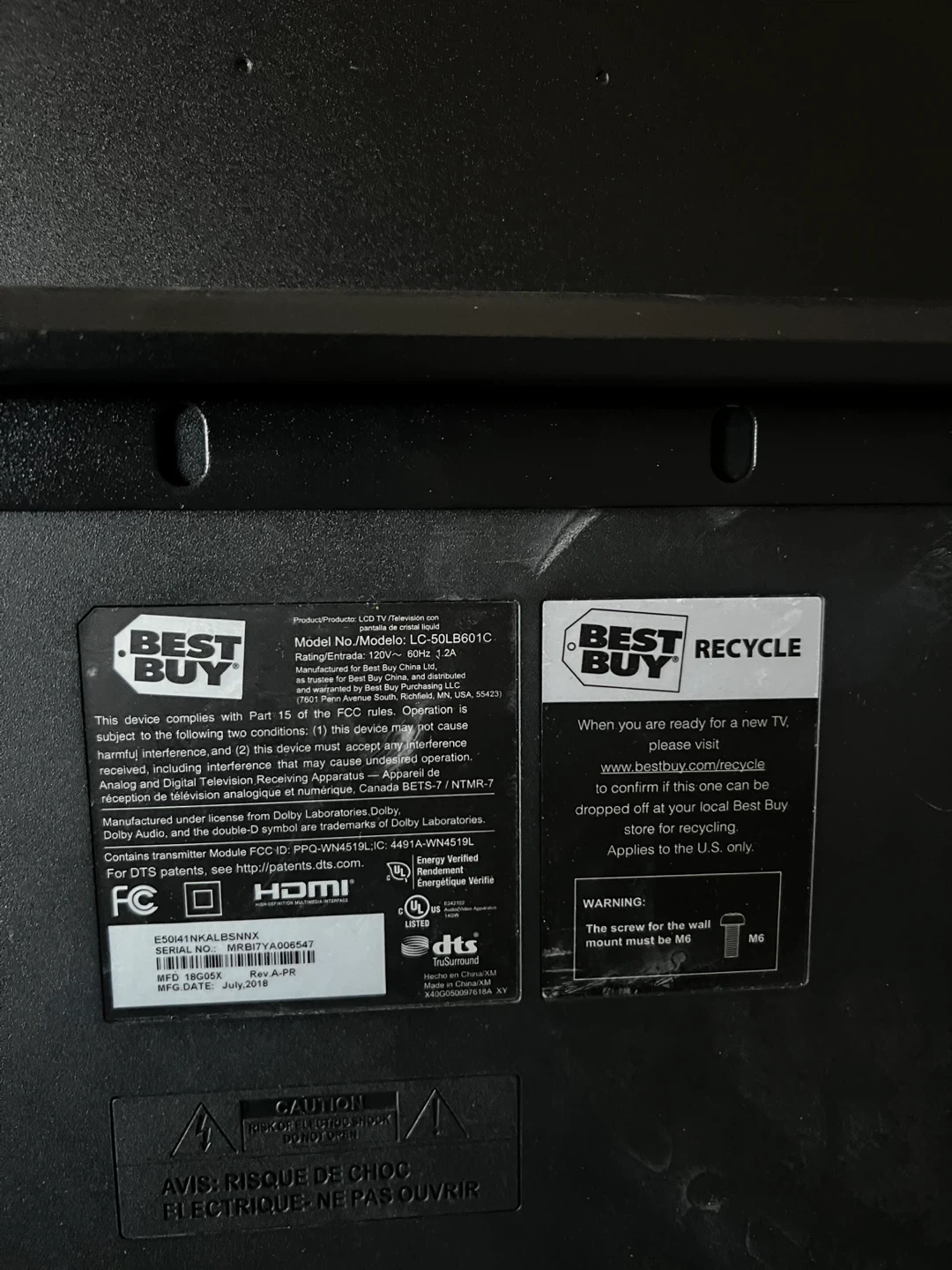NO LEGS, Full HD (1920x1080), Built in Roku OS, 60Hz, Motion Rate 60, LED, Wifi, LED, HDMI & USB, Remote. It's In Good Working Condition.
