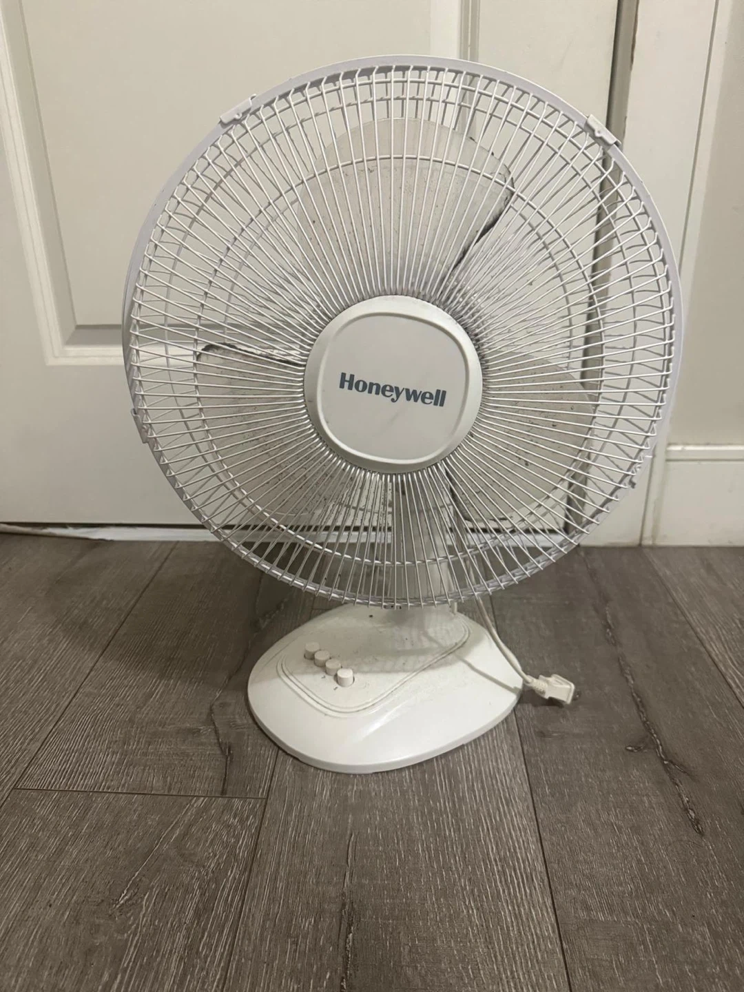 Selling a Honeywell table fan in white. It's in good working condition and perfect for keeping cool on those hot days!