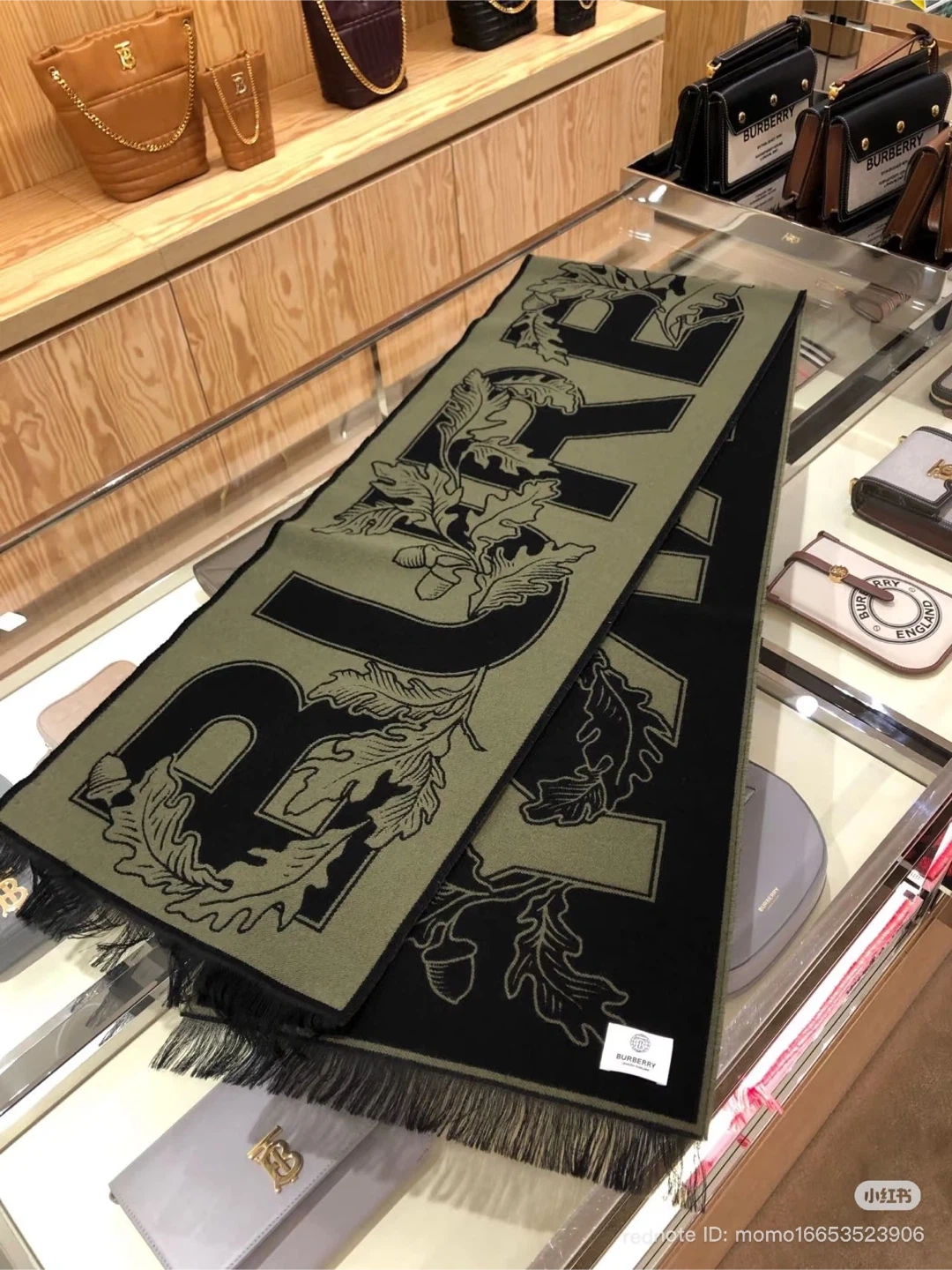 Burberry Fern Green Logo Oak Leaf Wool Football Scarf
