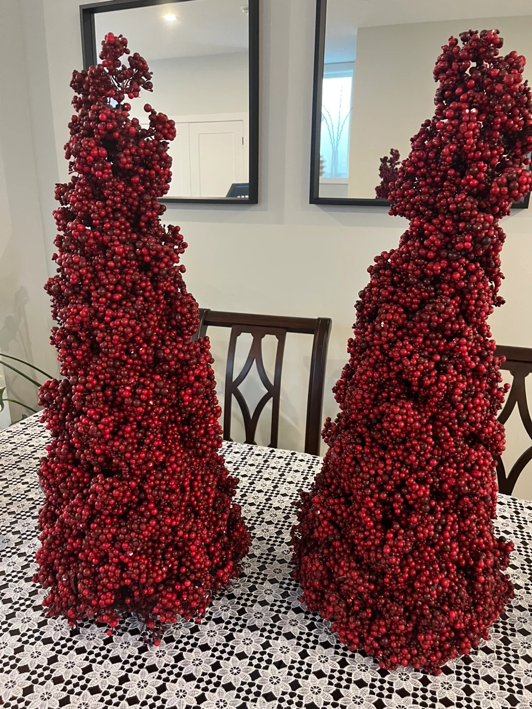 Selling a set of two festive red berry Christmas tree decorations! These eye-catching pieces will add a touch of holiday cheer to any room. They are in great condition and ready to brighten up your home for the Christmas season