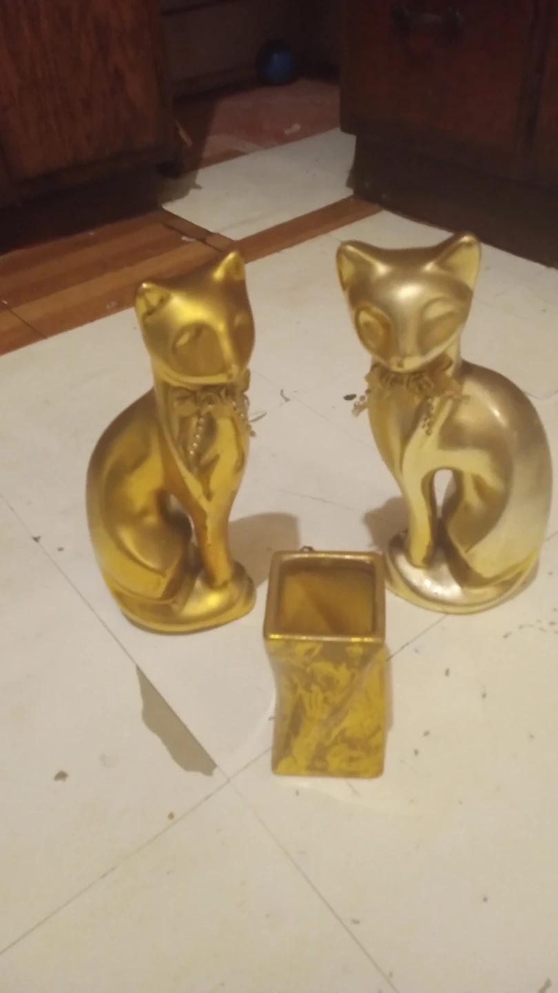 Buy & SellGold Cat Decorative Figurines (Set of 2) #cleanoutGold Cat Decorative Figurines (Set of 2) #cleanout$10Selling a set of two gold cat decorative figurines, along with a small vase. They would look great on a shelf or mantle!WHERE TO MEETRoselandView MapSELLERverifiedtonySouth Side1003 reviews0 chats·1 favorites·6 viewsSEND CHAT TO SELLERHi tony! I’m interested in your listing.Hi tony! I’m interested in your listing.Get the Karrot app to chatSign In to chat