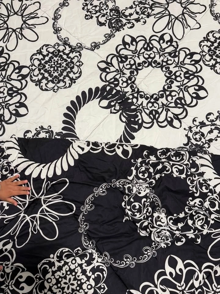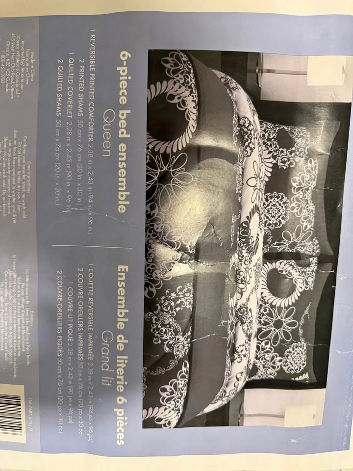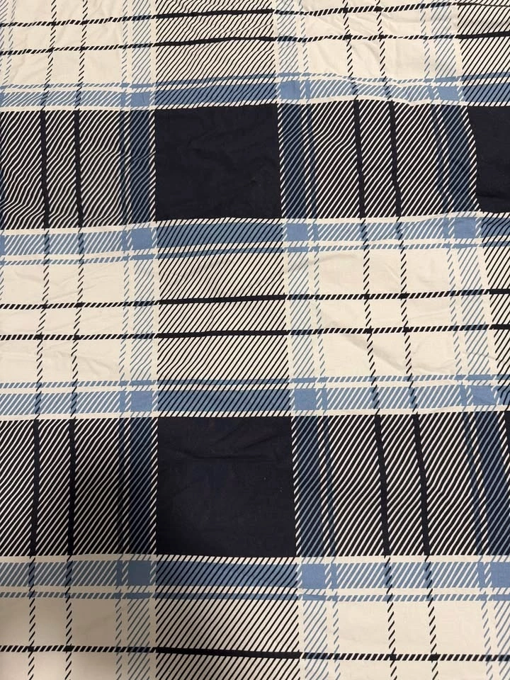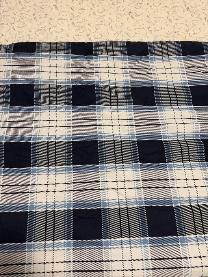 King size comforter set (blue checkered): $30. Comes with 2 pillow cases and a cover bag. Queen size comforter set (black n white reversible): $30. Comes with 2 pillow covers and quilted shams. Both were for guest bedroom so barely used. Pet free and smoke free home.