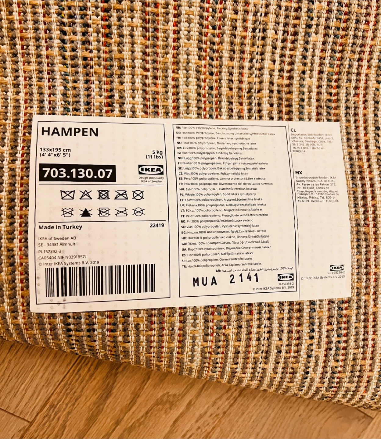 Selling a gently used IKEA Hampen rug! It measures 133x195 cm (4'4" x 5'6") and is made of 100% polypropylene with synthetic latex backing. It's a great size for adding some cozy comfort to any room!