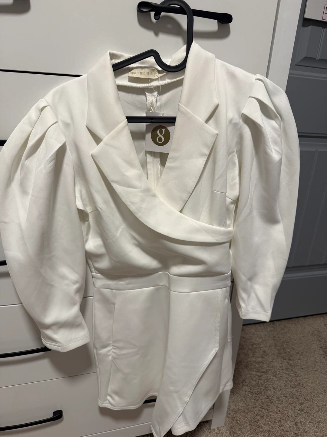 Selling a super cute white playsuit dress from Apartment 8. It's brandnew and a size small. Perfect for a night out or a special occasion!