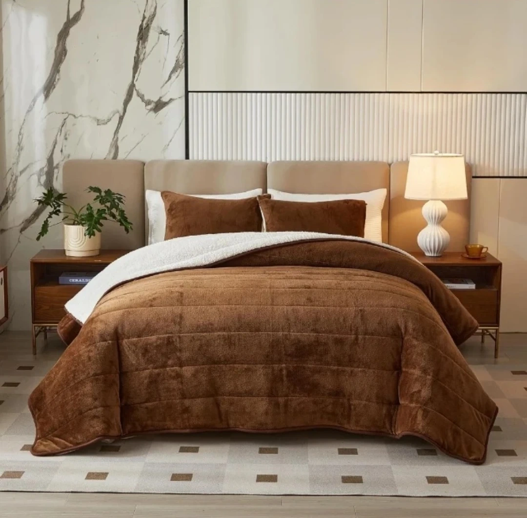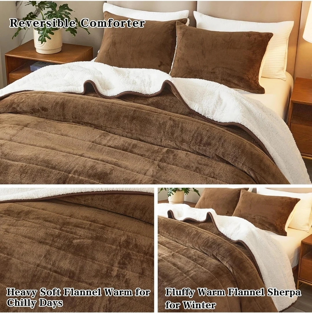 Brown Reversible Flannel Sherpa Comforter Set