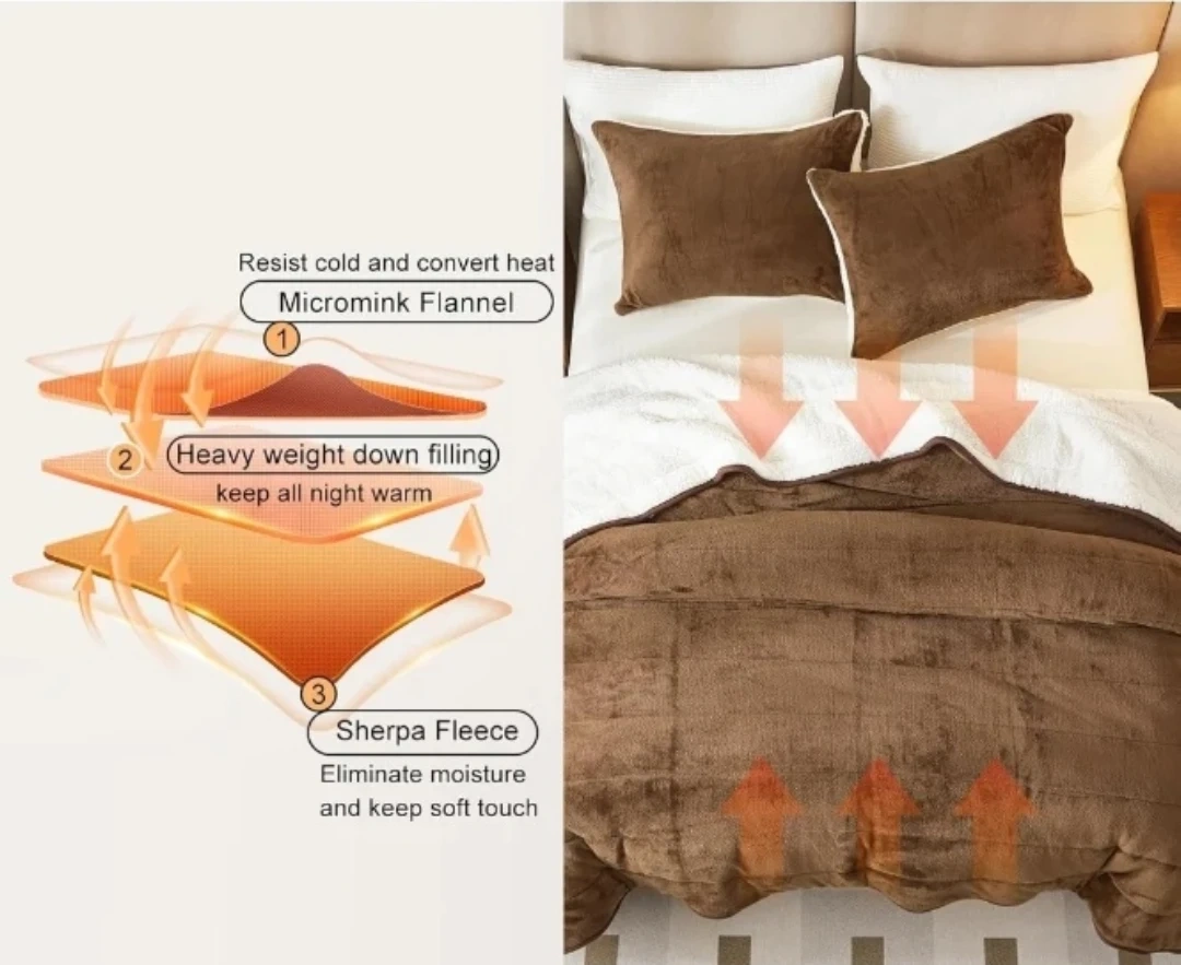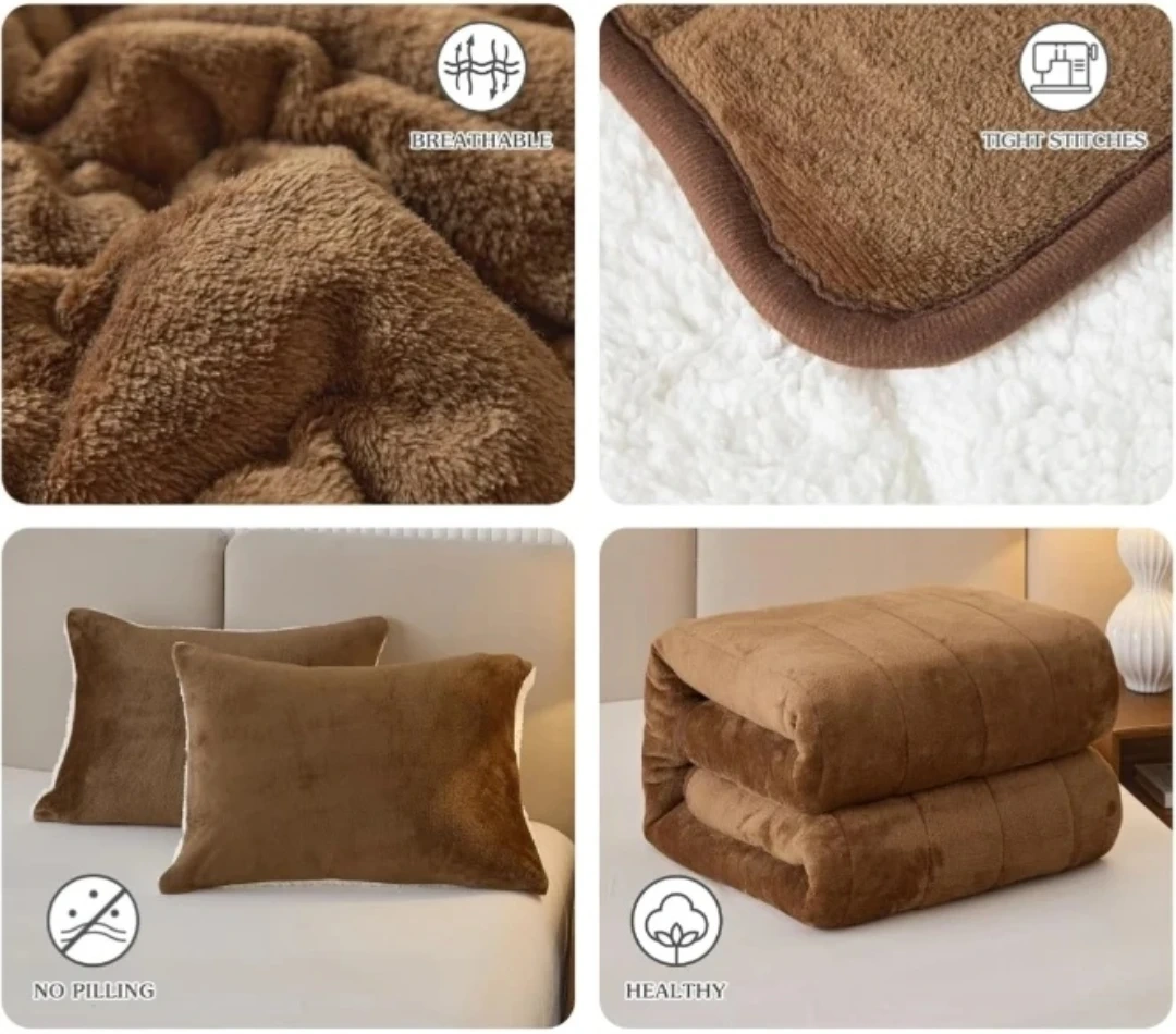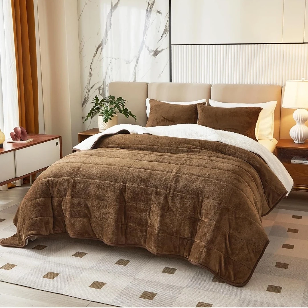 3-Layer Luxury Flannel Fleece Thick Bed Blanket Full Queen Size, Soft Plush Velvet Sherpa Blanket with 2 Pillow Shams Heavy Warm for Winter, Breathable n Washable, Brown