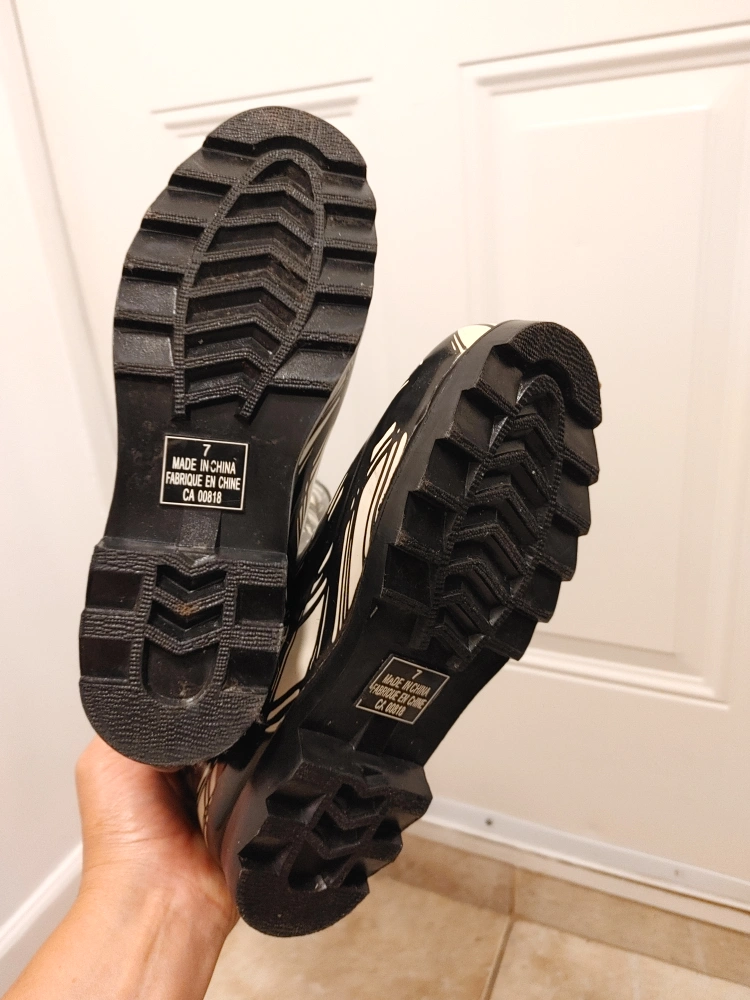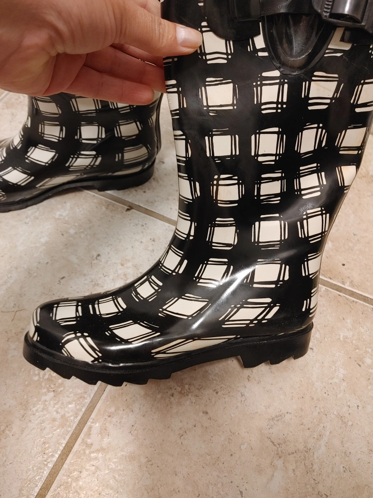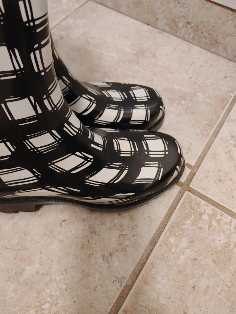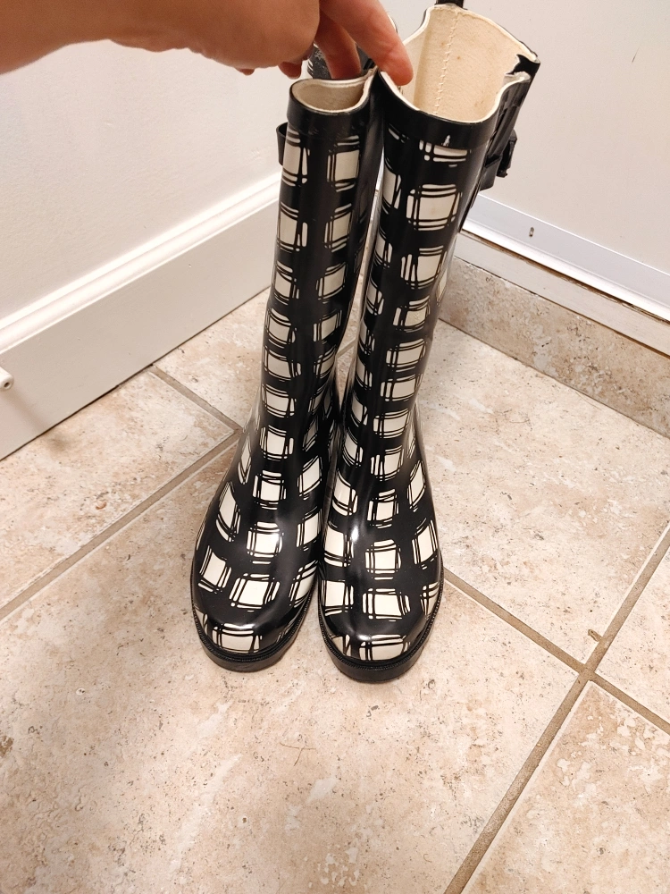 Women's Black & White Plaid Rain Boots size 7