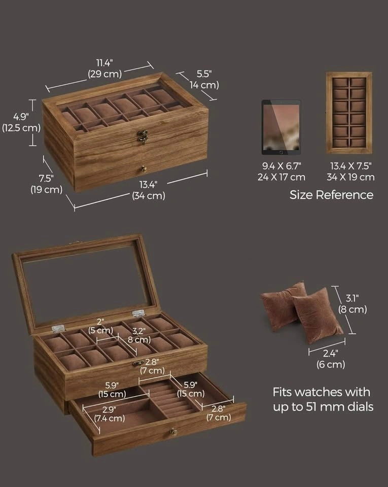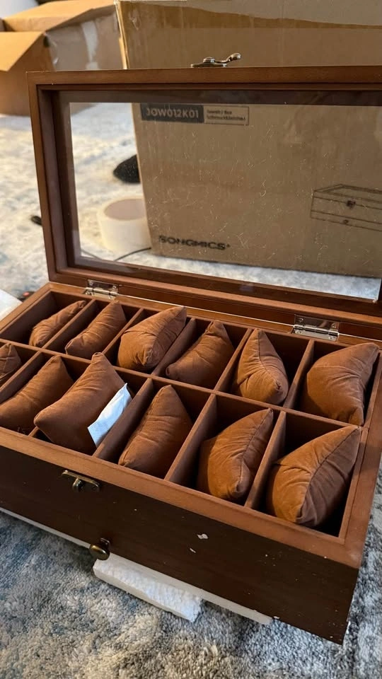SONGMICS 12-Slot Watch Box – 2-Tier Display Case | NEW | Rustic