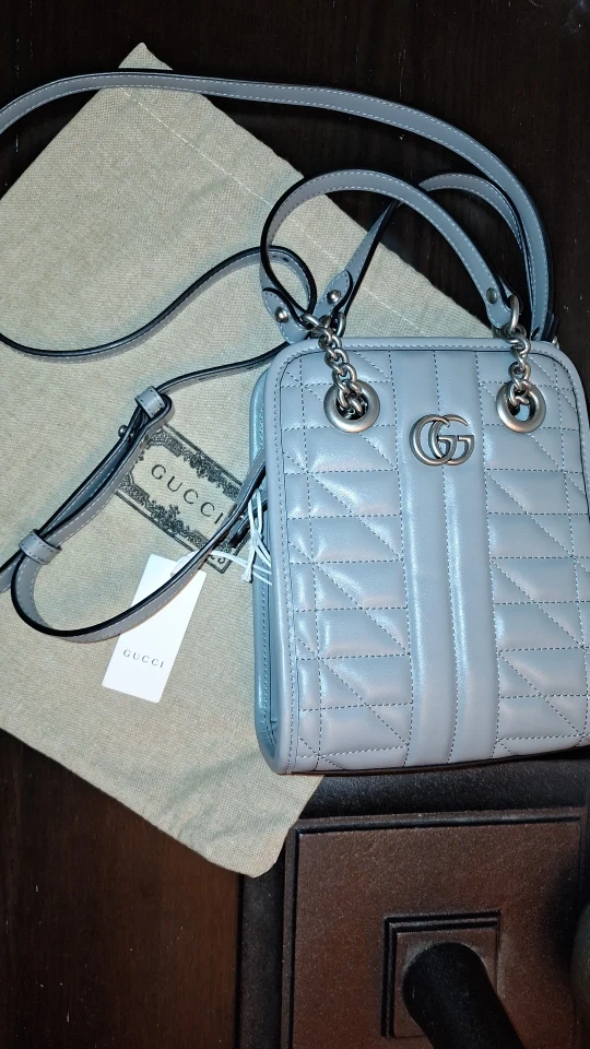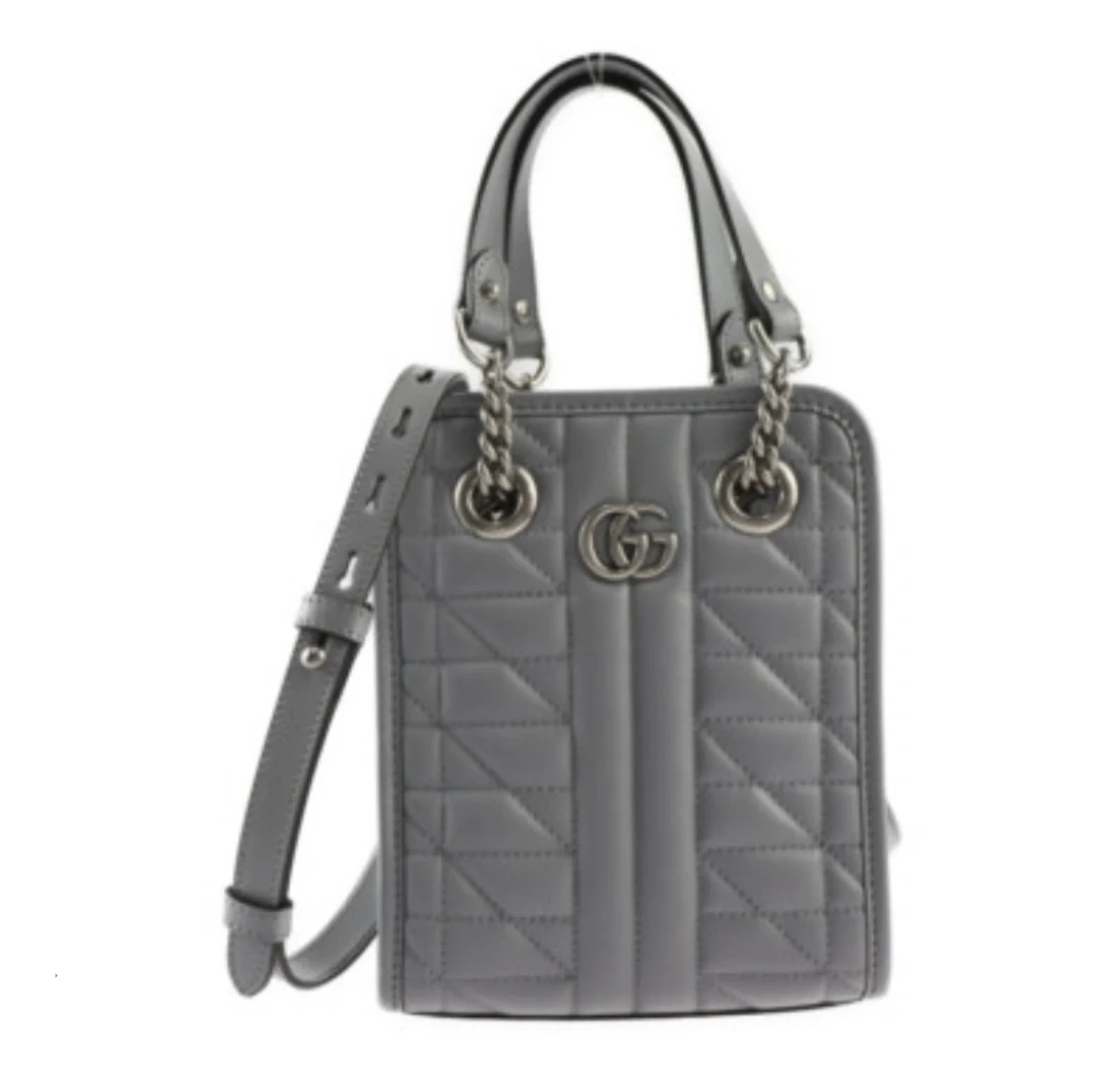 Quilted Mini Handbag versatile, a handbag and a shoulder bag. gray leather, it features an open closure and measures 19cm in height, 15.5cm in width, and 5cm in depth. The handle drop is 10.50cm, the strap drop extends to 50cm, for comfortable wear.
