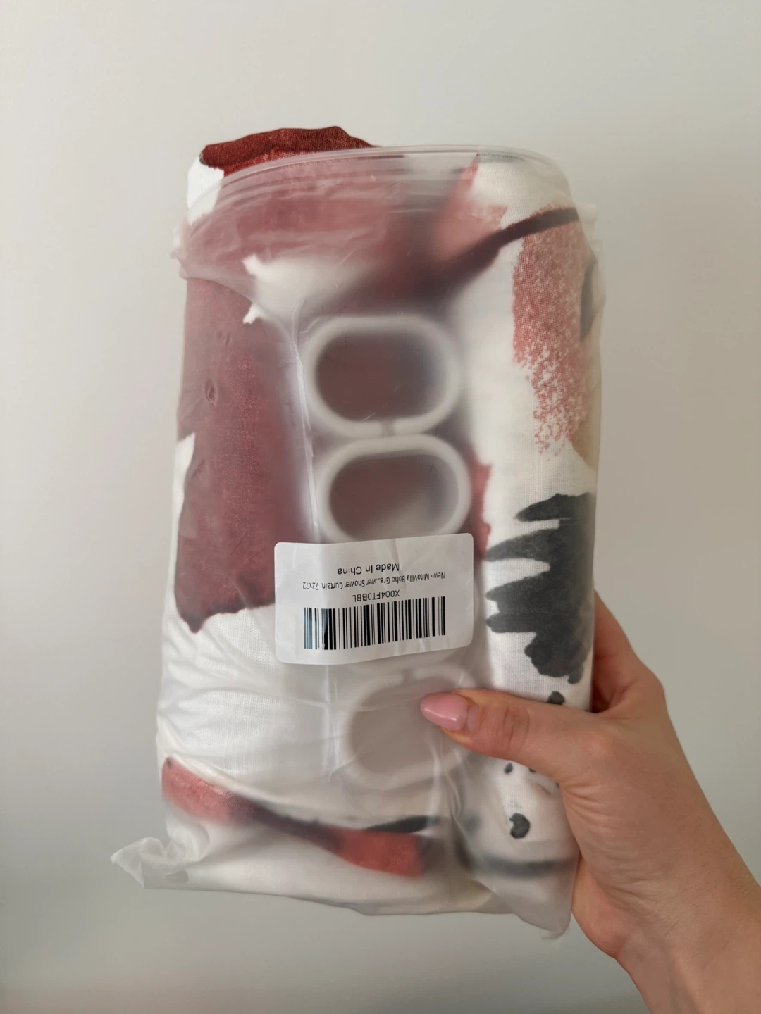 - 72in x 72in cream printed shower curtain fits standard showers