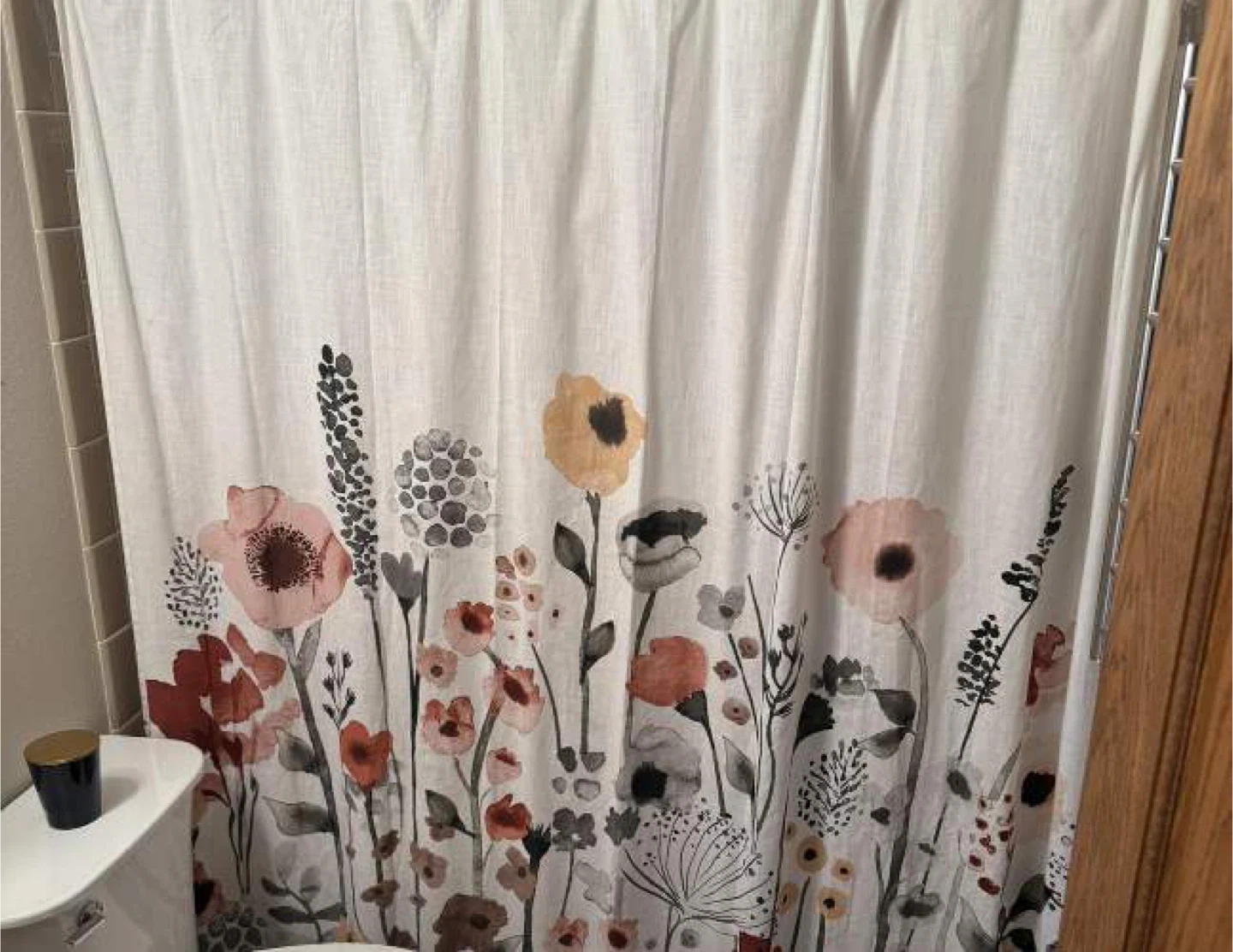 The Floral Wave Shower Curtain from Threshold™ will bring sweet style and soft pops of color to your bath space. A vibrant pattern of floral sprigs rising from the bottom adorn this standard-size shower curtain, bringing a relaxing feel and a soft accent to your bathroom. Made from 100% cotton, the floral shower curtain gracefully encloses your bathtub for added privacy, and it comes with a buttonhole top that allows for easy installation, adding just the right amount of functional style to your bath space.