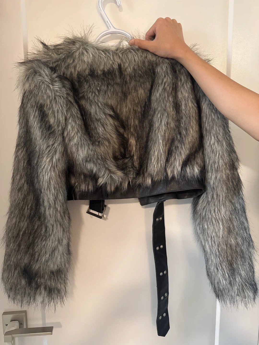 Selling a Fatalblow faux fur cropped jacket. It features a belt detail and is in great condition. Perfect for adding a stylish touch to your outfit!