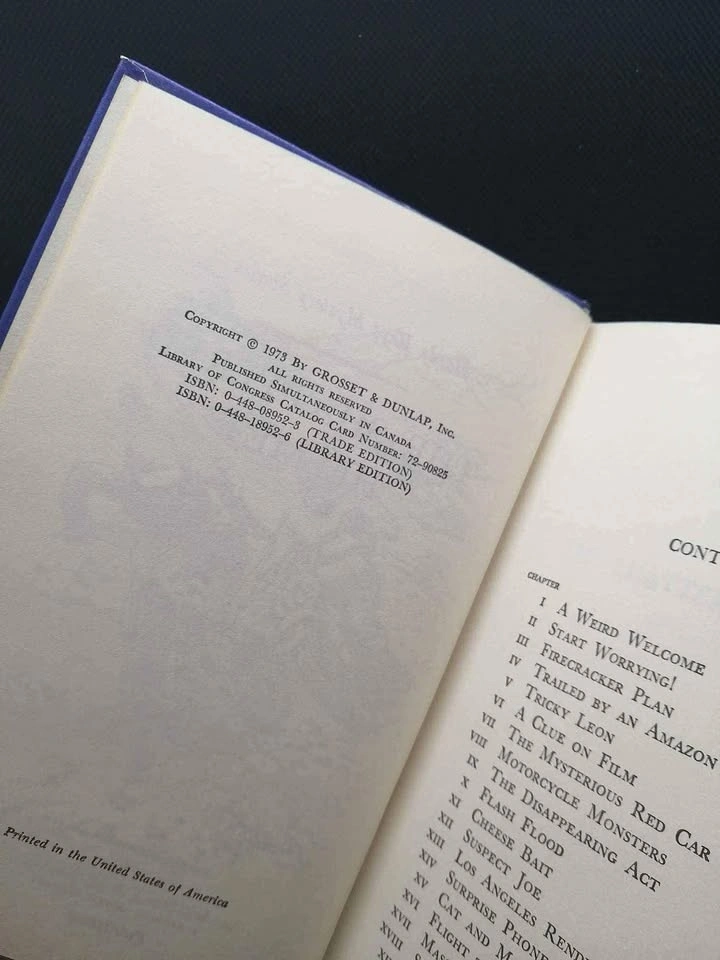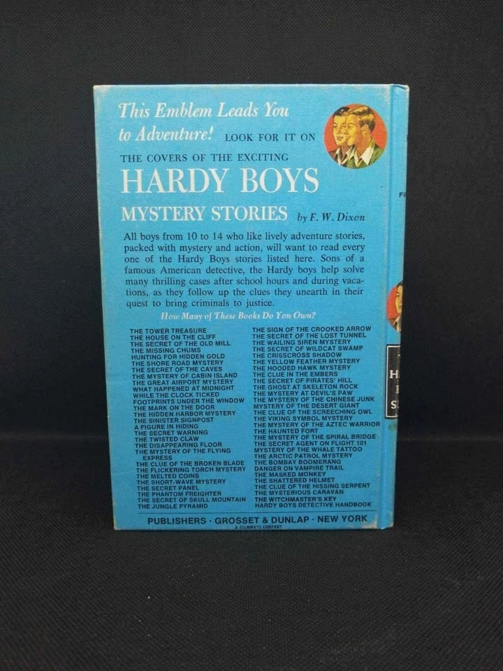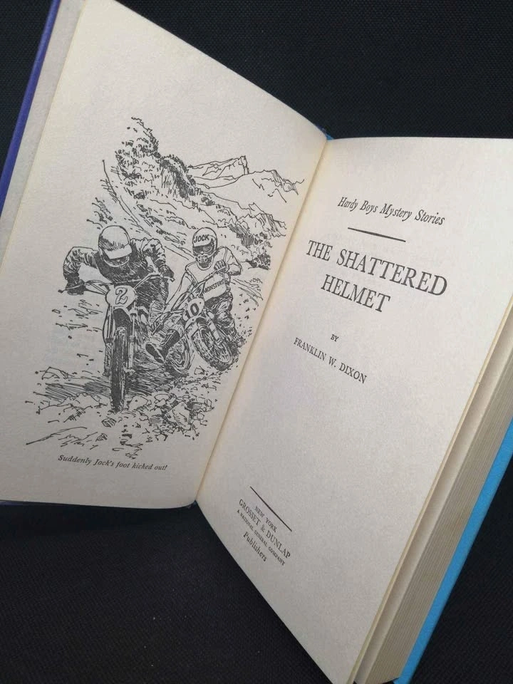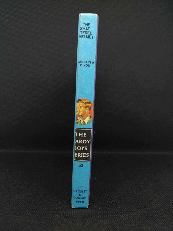 1973 The Hardy Boys - The Shattered Helmet Author: Franklin W. Dixon Published By: Grosset & Dunlap, Inc. Pages: 190 Binding: Hardcover Condition: Near Fine Slight Shelf Wear on Bottom Edge and Head About: Danger is the name of the game when the Hardys agree to help their pen pal from Greece, Evan Pandropolos, search for a priceless, ancient Greek helmet. Years ago, Evan’s uncle had loaned it to Hollywood movie company for use in a silent motion picture, but the treasured helmet had been lost. Picking up foes along the way, the young detectives unearth clues that keep them constantly on the move—from their Greek college campus to California and finally to Greece.