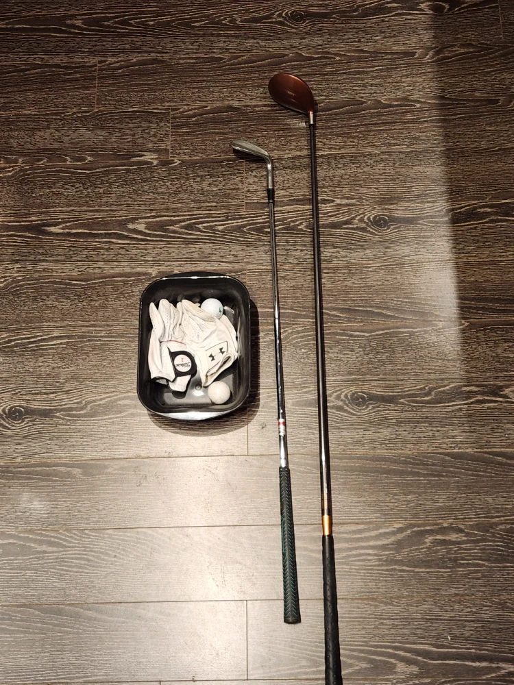 Taylor Made and TL Golf Clubs, Titleist & UA Gloves, and 2 balls