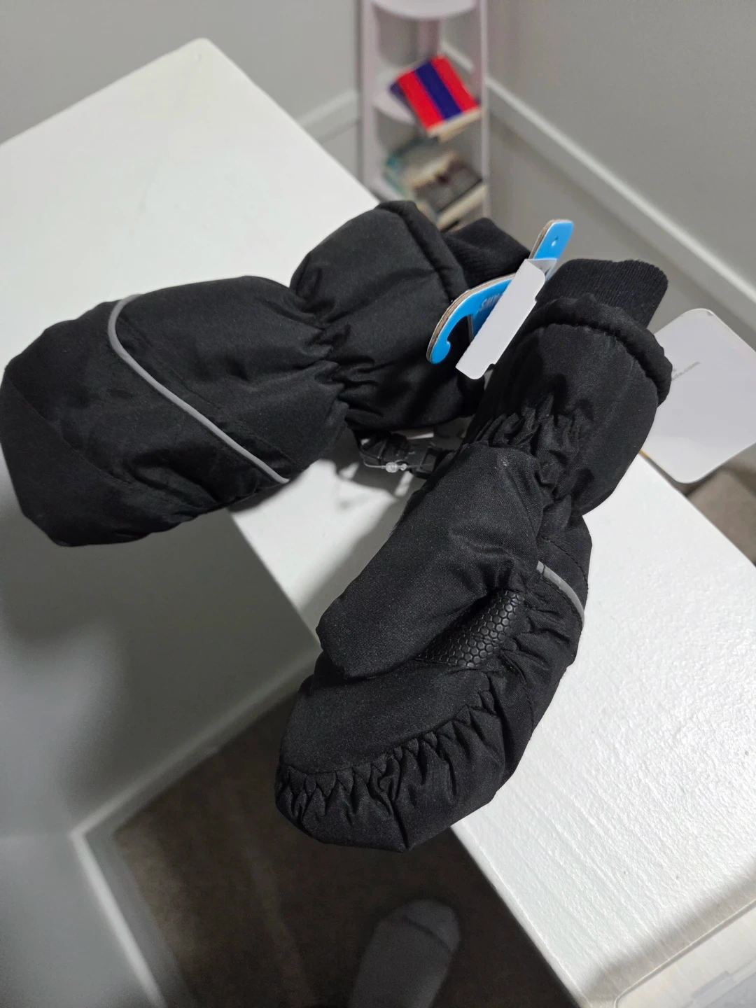 These brand new Hot Paws mittens are perfect for keeping your little one's hands warm this winter! They are black and sized for children aged 4-6 years. They have a buckle to keep them together, and reflective trim for safety.