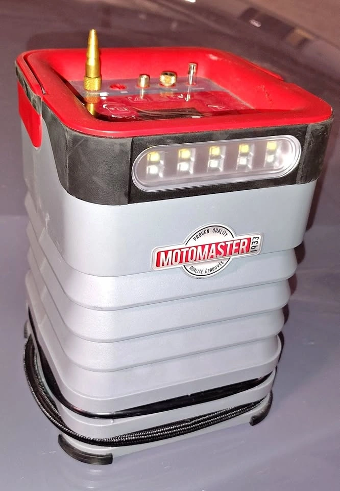 Selling a reliable Motomaster portable air compressor that can run off a standard household 110V outlet. Super handy for keeping in the car, garage, or for road trips. Great for tires, sports equipment, inflatables, and emergency top-ups.