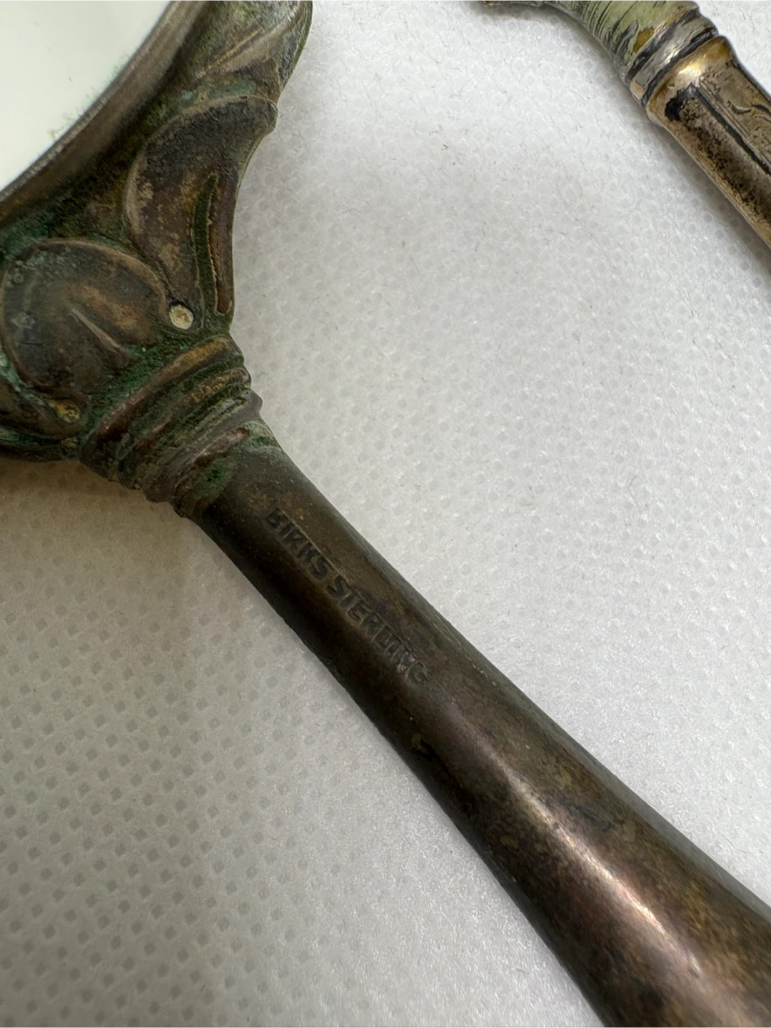 Selling a beautiful vintage Birks Sterling silver vanity set! The set includes a hand mirror, two brushes, and a nail file. All pieces are marked "Birks Sterling". They show some signs of age and use, but are overall in good condition for their age open to trade accepting offers