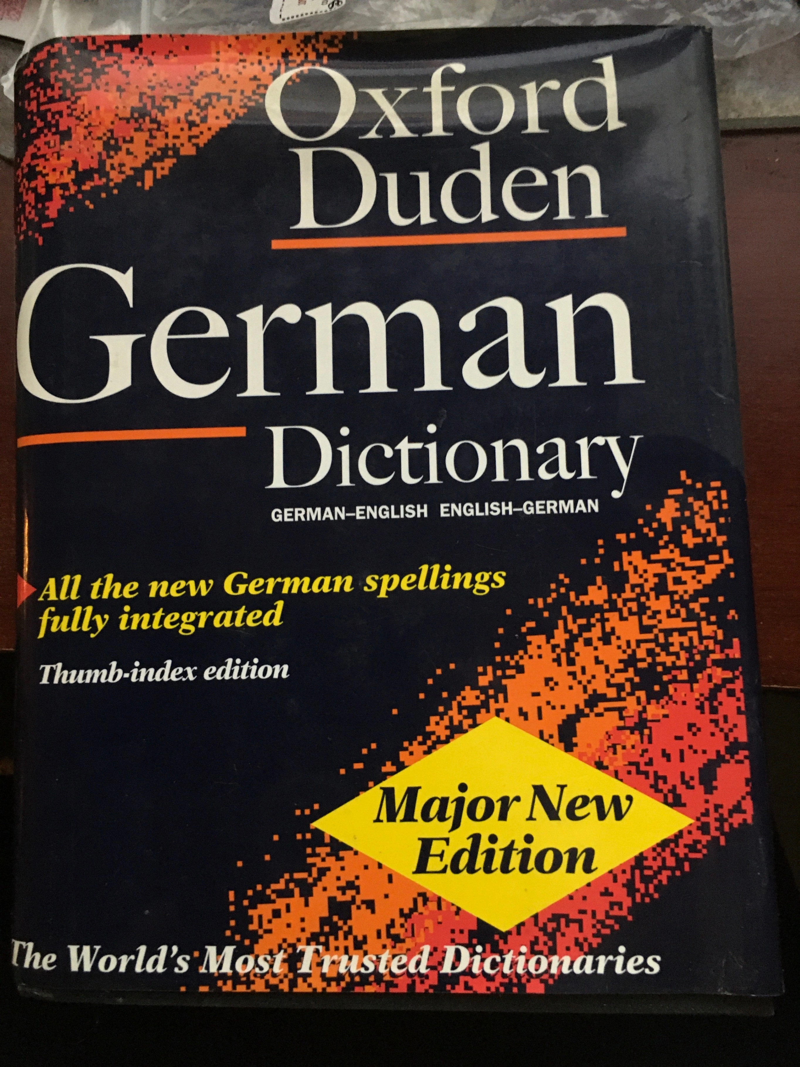 Selling an Oxford Duden German Dictionary. It's a German-English and English-German dictionary. This is a major new edition with all the new German spellings fully integrated. It's also a thumb-index edition