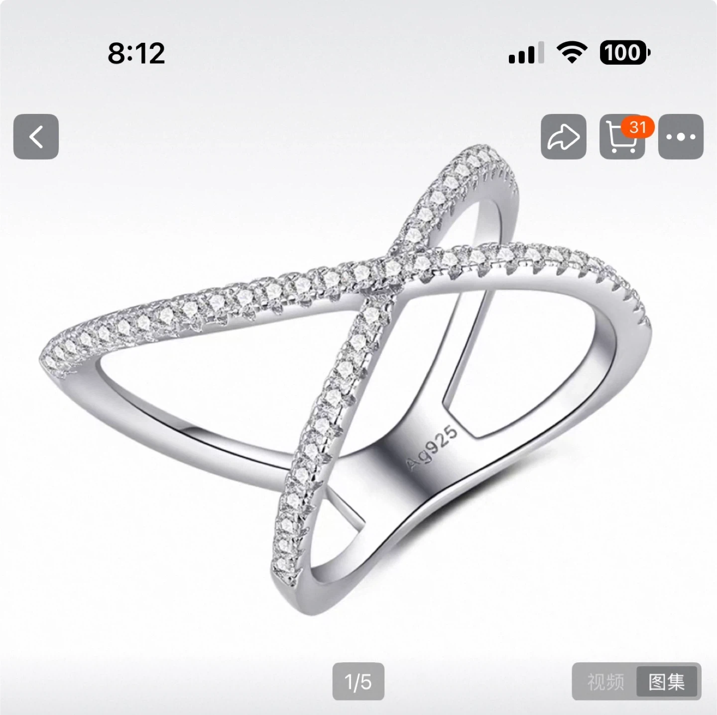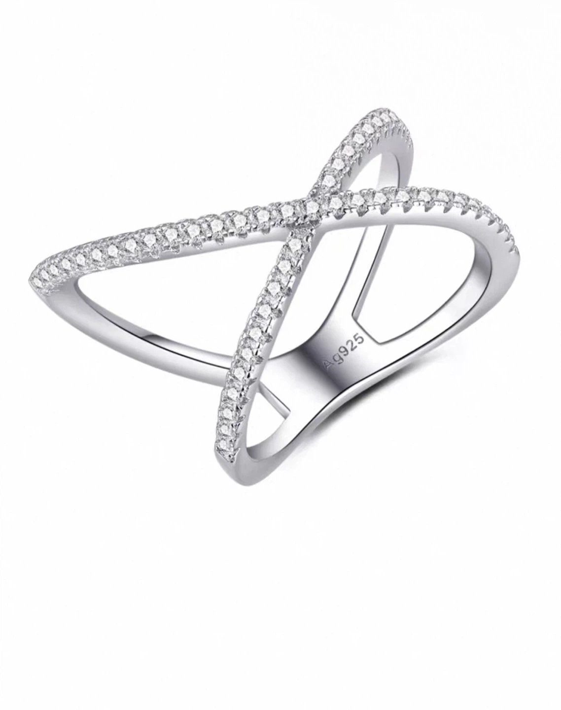 Selling a beautiful silver criss-cross ring. It's marked with 'Ag925', indicating it's made of sterling silver. It's a size 7 and in great condition!